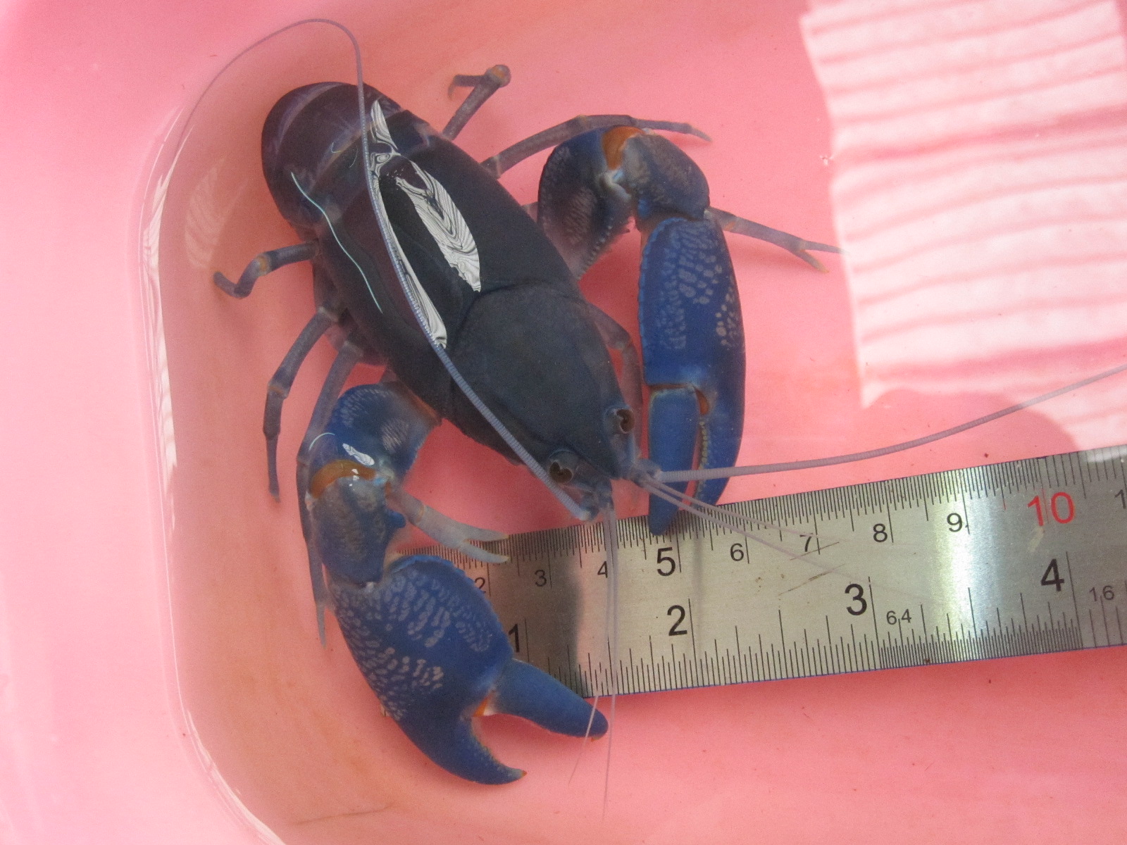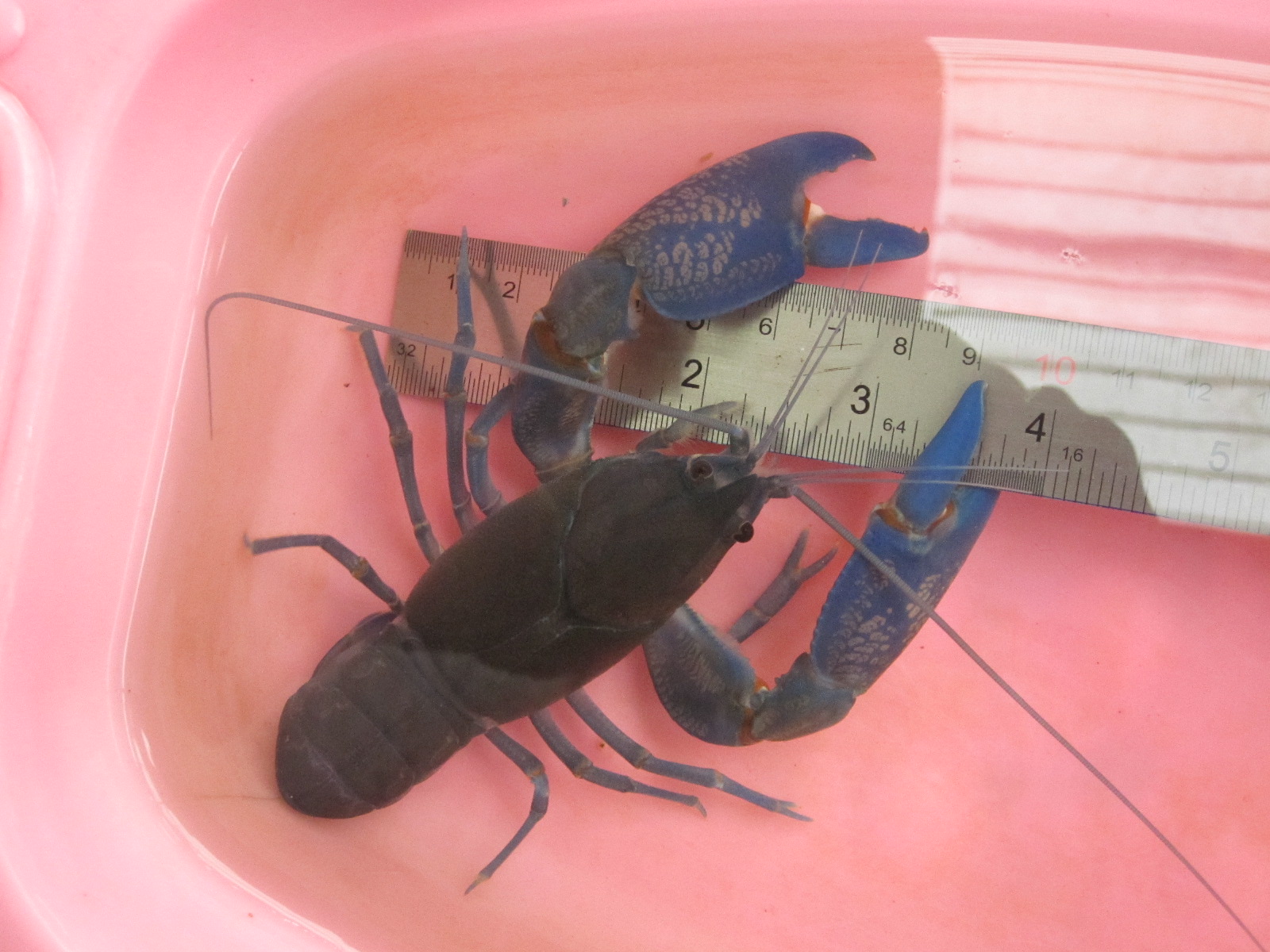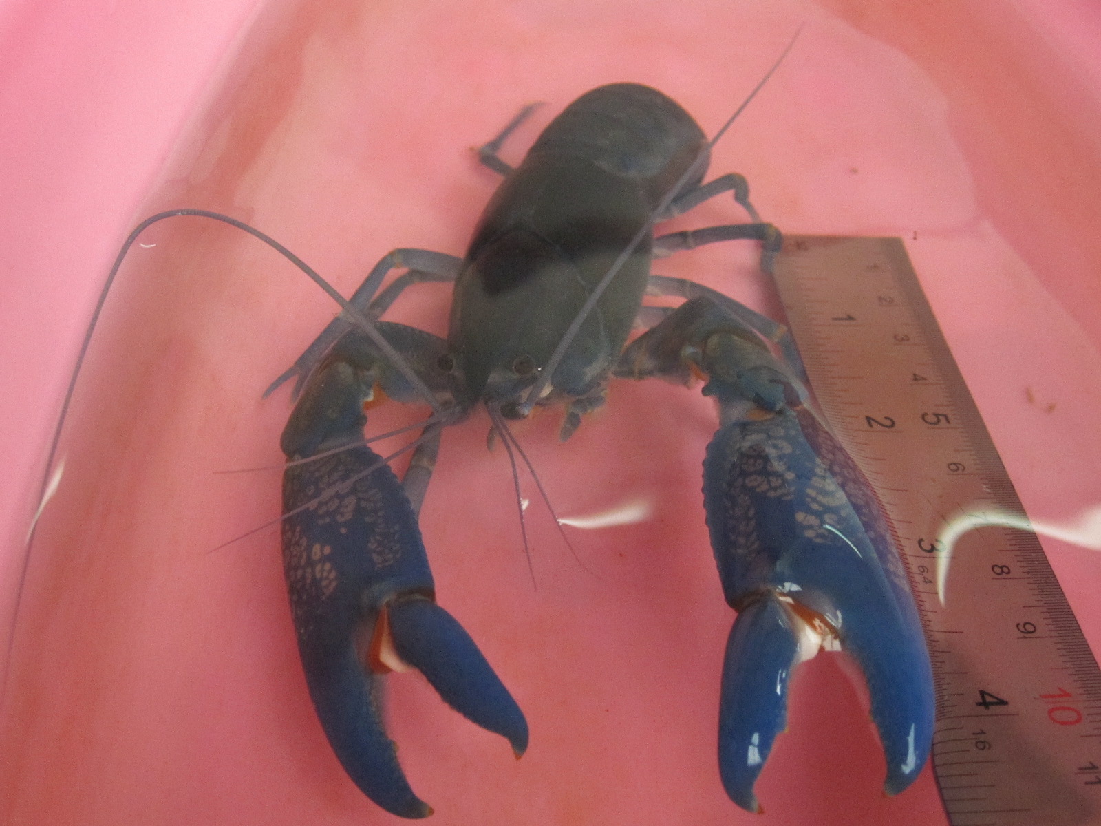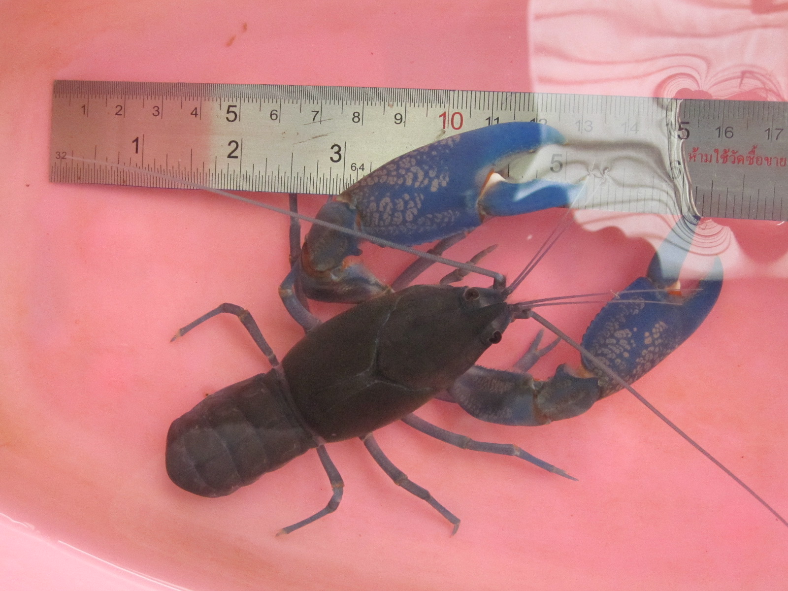 เพศผู้ สัดส่วน 4.5"(เพิ่งลอกสียังไม่มา) สีน้ำเงินเข้มๆๆๆ กล้ามใหญ่สวยสมชื่อครับ
