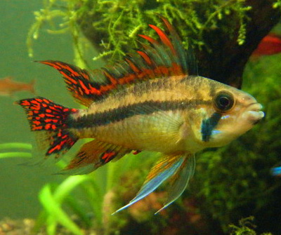 เป็นหมอแคระที่สามารถเลี้ยงรวมกับปลาอื่นที่มีขนาดเล็กรักสงบได้ แต่ที่ดีควรเลี้ยงพวกมันในตู้ที่จัดพิเศษสำหรับหมอแคระ ปลาตัวผู้จะสร้างฮาเรมด้วยตัวเอง ควรเลี้ยงในอัตราตัวผู้ 1 ตัวต่อตัวเมีย3-4 ตัว ปลาตัวผู้จะคอยปกป้องอาณาเขตกับปลาตัวเมียหลายตัวและรังของมันเอง ควรตกแต่งตู้ด้วยหิน ขอนไม้ รากไม้ และด้านข้างด้านหลังตู้ด้วยไม้น้ำที่หนาแน่น เพราะพวกมันต้องการที่หลบซ่อนตัว วัสดุรองพื้นตู้ควรทึบสลัว เพื่อปลาจะได้แสดงสีสันที่แท้จริง มันเป็นปลาที่บอบบางต่อสารเคมีอย่างมาก