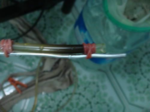 ไม้แขวนเสื้อ ขอแม่มา ยาวสัก ไม้บรรทัดกว่ากำลังสวย สายอ๊อกจากที่เลี้ยงปลาสมัยก่อน ก็เอาสายอ๊อก มัดกับ