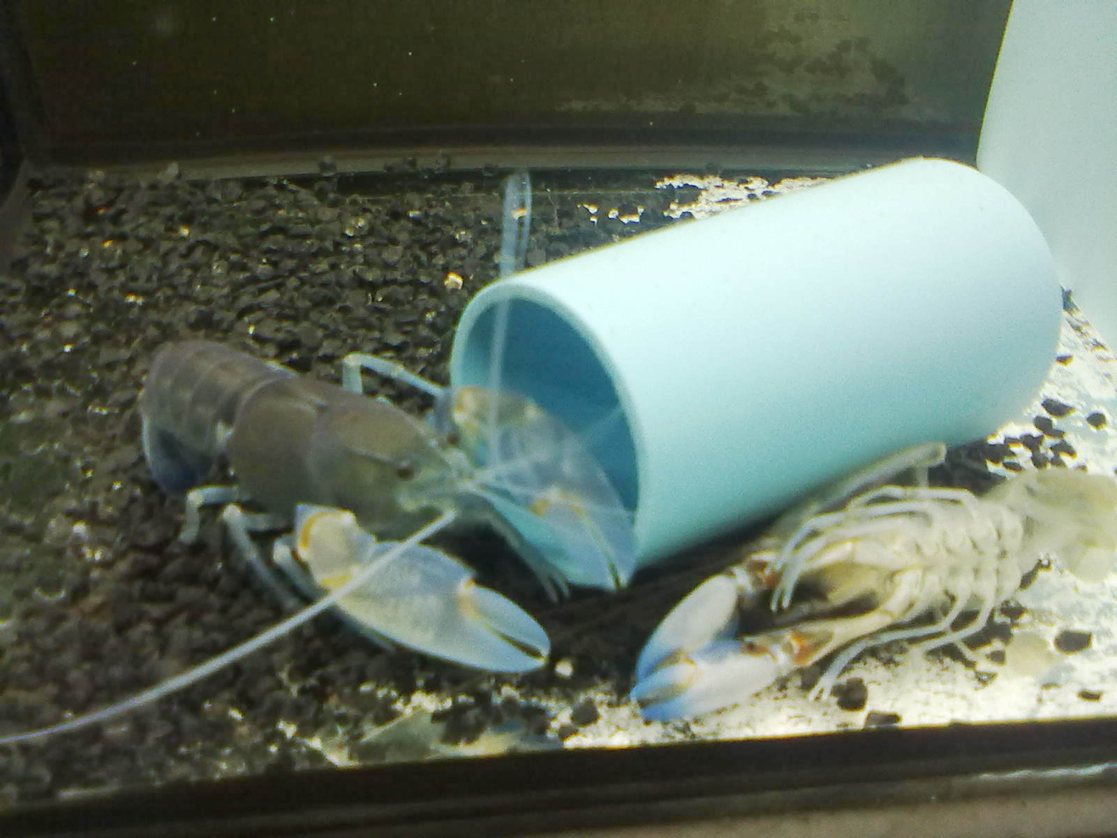 แต่นึกในใจมันดันไปล้มตรงซอกนั่นพอดีมันจะแคบไปมั้ย กลัวๆ เลี้ยงกุ้งมาได้เดือนกว่าๆ ลอกครั้งแรกมันก็ลอกตอนดึกๆ รอบนี้มันก็ตอนดึกแต่ตื่นมาพอดีแต่ ได้ดูแบบใช้ไฟมือถือส่องไม่กล้าเปิดไฟ กลัวมันตกใจลอกคราบไม่ผ่าน ส่องไปส่องมามันดันหัวออกแว้ว นึกในใจเคยดูในเว็บ มันท่าจะนาน ส่องไปสักพักแป๋บเดียวหัวออกแว้ว มันสลัดตัวให้หลุด กล้ามก็ดันไปติดท่อนั่นอีก กลัวอีกกล้ามจะโดนท่อจะเป็นไรมั้ยอีก พอได้มาดู ก็กลัวว่ามันจะลอกครบมั้ยติดมั้ยเหมือนใจจดใจจ่อกับมัน พอมันหลุดออกมา มันดันหงายท้องอีกอ้าวนึกในใจอย่าเป็นไรเน้อ ตะแคงซ้ายตะแคงขวาส่องไปส่องมา กุ้งเริ่มเดินแต่ก็ยังไม่เห็นสี ยังเอียงอยู่ไม่กล้าเปิดไฟครับกลัว ตัดใจนอนดีก่า พรุ่งนี้ค่อยดูตื่นมา6 โมง เปิดไฟดู โอ้โห ตัวใหญ่มากกล้ามเบ่อเริ่ม ลุ้นตัวให้เป็นฟ้า แต่กล้ามมีแต่สีฟ้า เพราะตัวนี้ กล้ามเป็นสีน้ำเงิน ตัวน้ำตาล แต่ก็ดีใจลอกผ่านตัวใหญ่เบิ้ม ผมว่าคนเลี้ยงกุ้งทุกคนชอบที่กุ้งลอกคราบแล้วมีการเปลี่ยนแปลงเหมือนมีอะไรใหม่ๆให้เราติดตาม คนที่เห็นกุ้งลอกคราบครั้งแรกคงตื่นเต้นเหมือนผมนะครับ รูปไม่ชัดมื่อถือถ่ายครับ [เจ๋ง] [on_066]