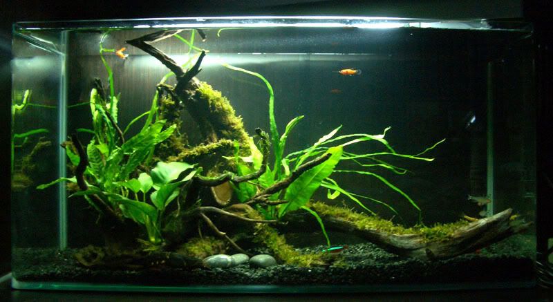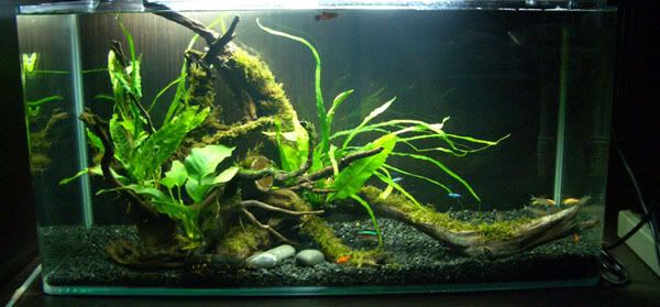 ได้รับเเรงบันดาลใจจากตู้น้ำไหลกะมอสบอล (หลังอมฤตาลัย)ของคุณ หอยงุงิที่ ใช้ไม้น้ำที่ไม่ต้องปักลงดิน พันเอากะขอนอย่างเดียว ชิวดี ยังไม่อยากรื้อจิงจัง เหนื่อย....