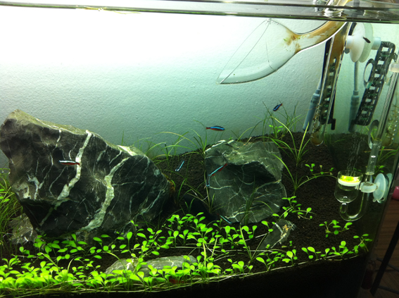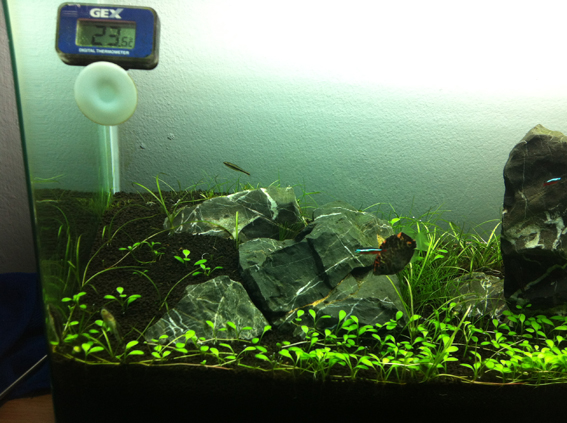 ผมว่าไฟมันพอแล้วครับแถมน้ำยังเย็นอีกอย่างที่คุณ SODA YEN บอกนั้นแหละครับถ้าปักมันถี่หน่อยมีจะเลื้อยได้ดีกว่านะครับอันนี้ผมคิดไปเองเปล่าไม่รู้เหมือนแย่งกันหาสารอาหารยังไงอย่างงั้นเลย [on_035] แต่มันเป็นเรื่องปรกติครับที่ด้านซ้ายขวามันเลื้อได้ช้ากว่าตรงกลางเพราะไฟมันไม่ได้ดดนเต็มๆเหมือนตรงกลางด้วยแหละครับ