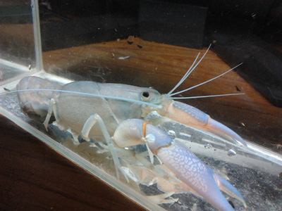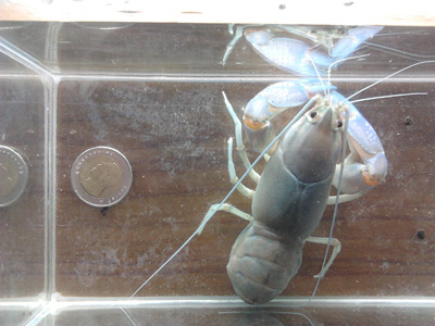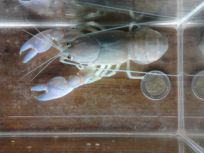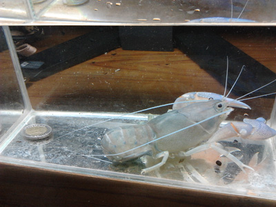 ตัวที่ 3 ตัวเมียขนาด 4.7 นิ้ว ขาหายไปข้าง ก้ามเท่า หนวดขาดปลายๆ สีตามรูปครับ