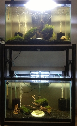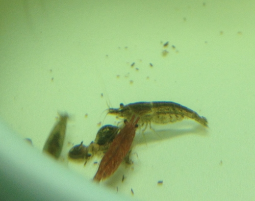 และ กุ้งแคระอีกประมาณ 40 ชีวิต + เด็กๆ ตัวจิ๋วอีกพอสมควร เท่าที่เห็นเฉพาะตัวใหญ่ๆ มี ไฟร์เรท/ ไทเกอร์/ ไฮบริท/ บลูเพิล/ บลูชิ/ ซ็อคโกแลต (หลายตัวกำลังไข่)