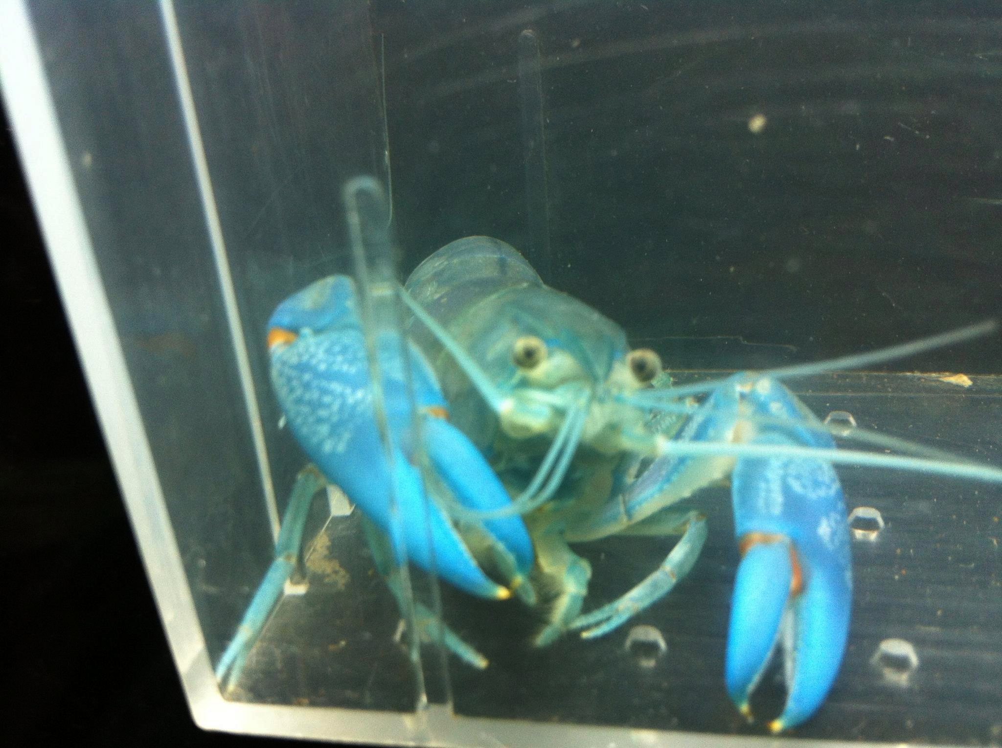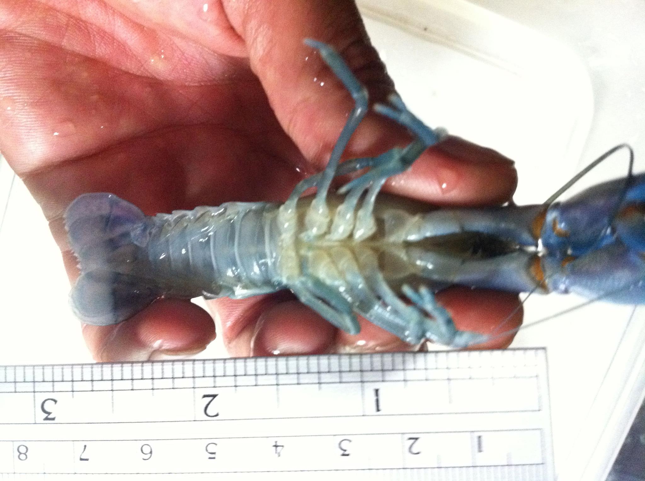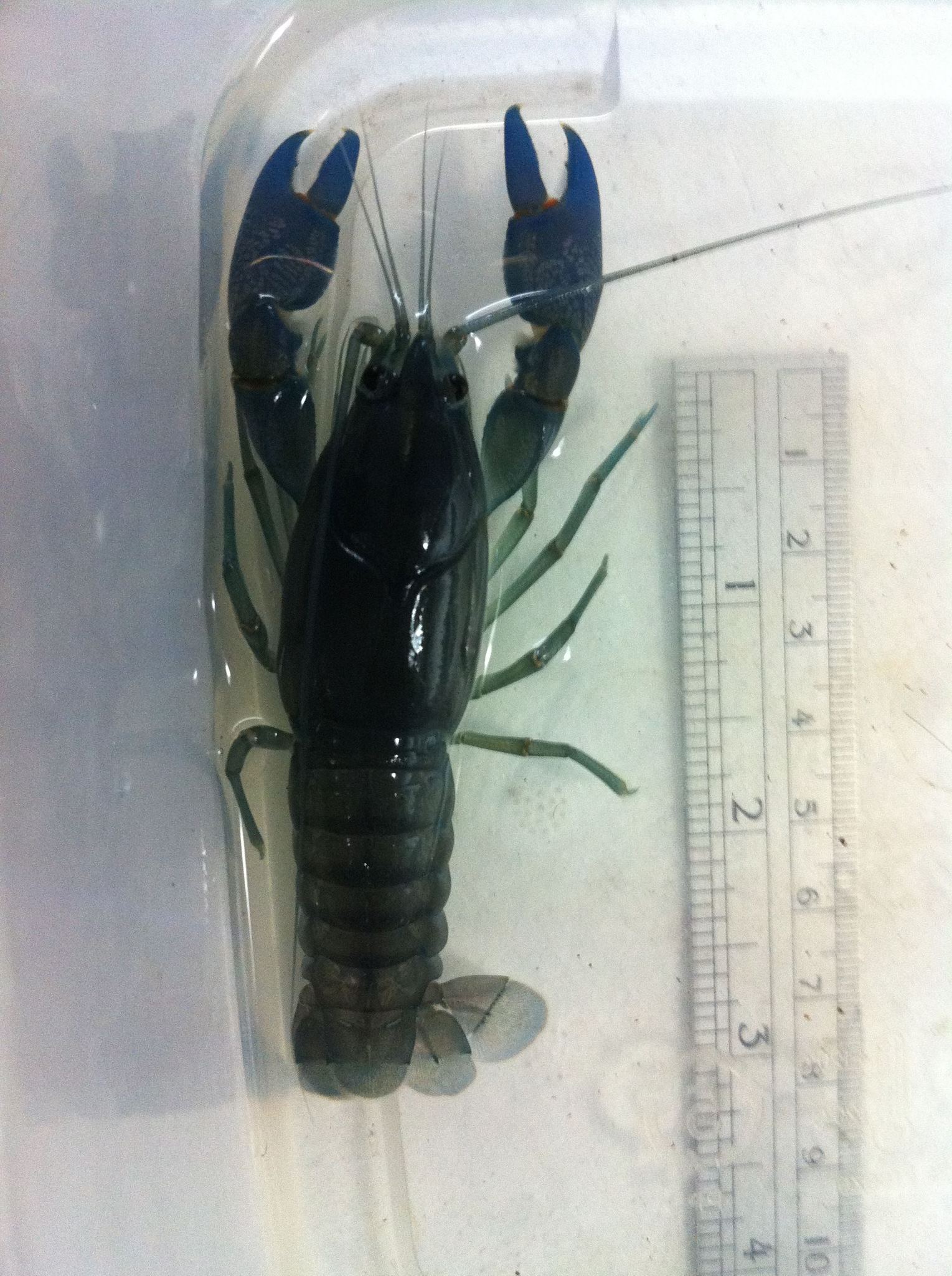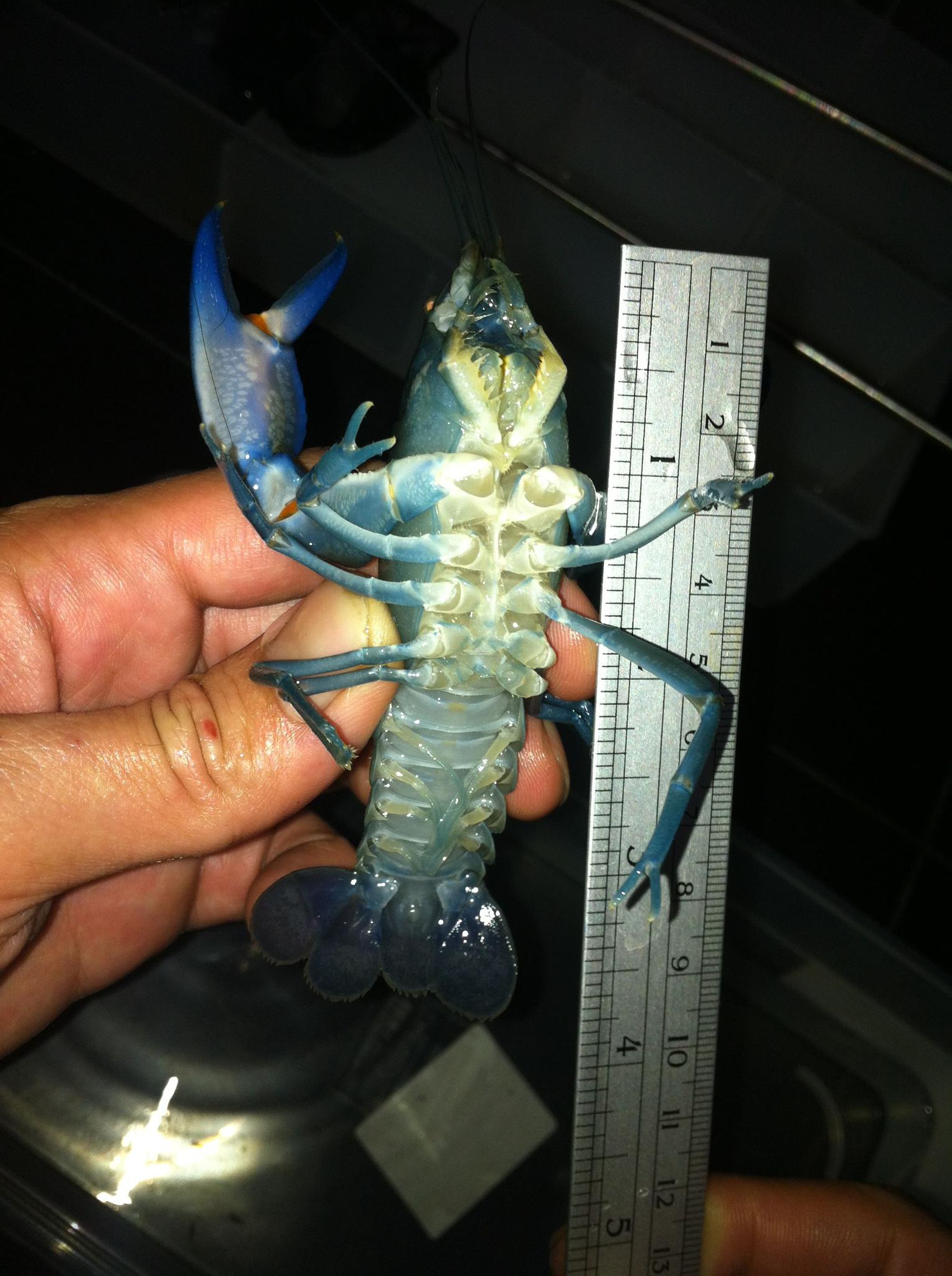 ประมาณ 4 นิ้ว เพศผู้มีอยู่ แต่สีน้ำเงินจะไม่มีอ่ะค๊า มีแต่สีออกเทาๆเขียวๆ ><" ตามรูป