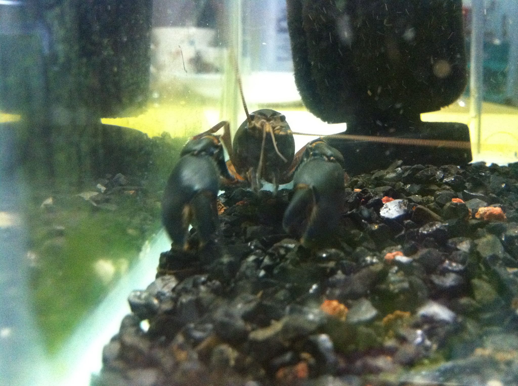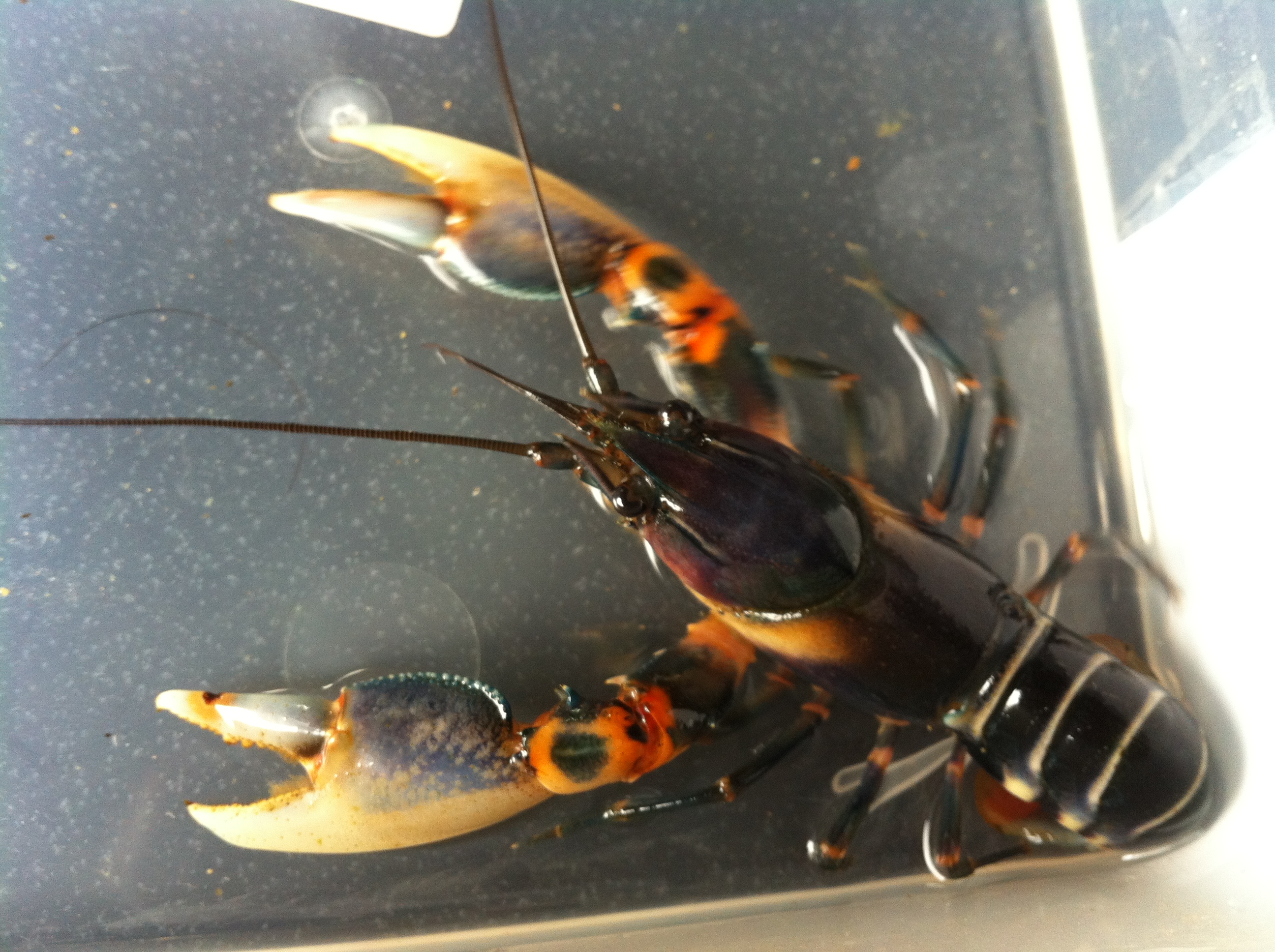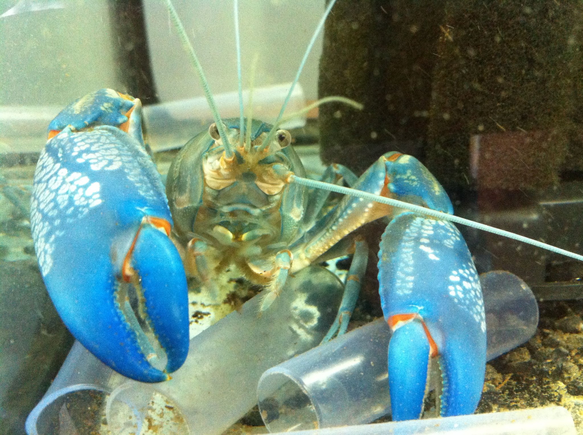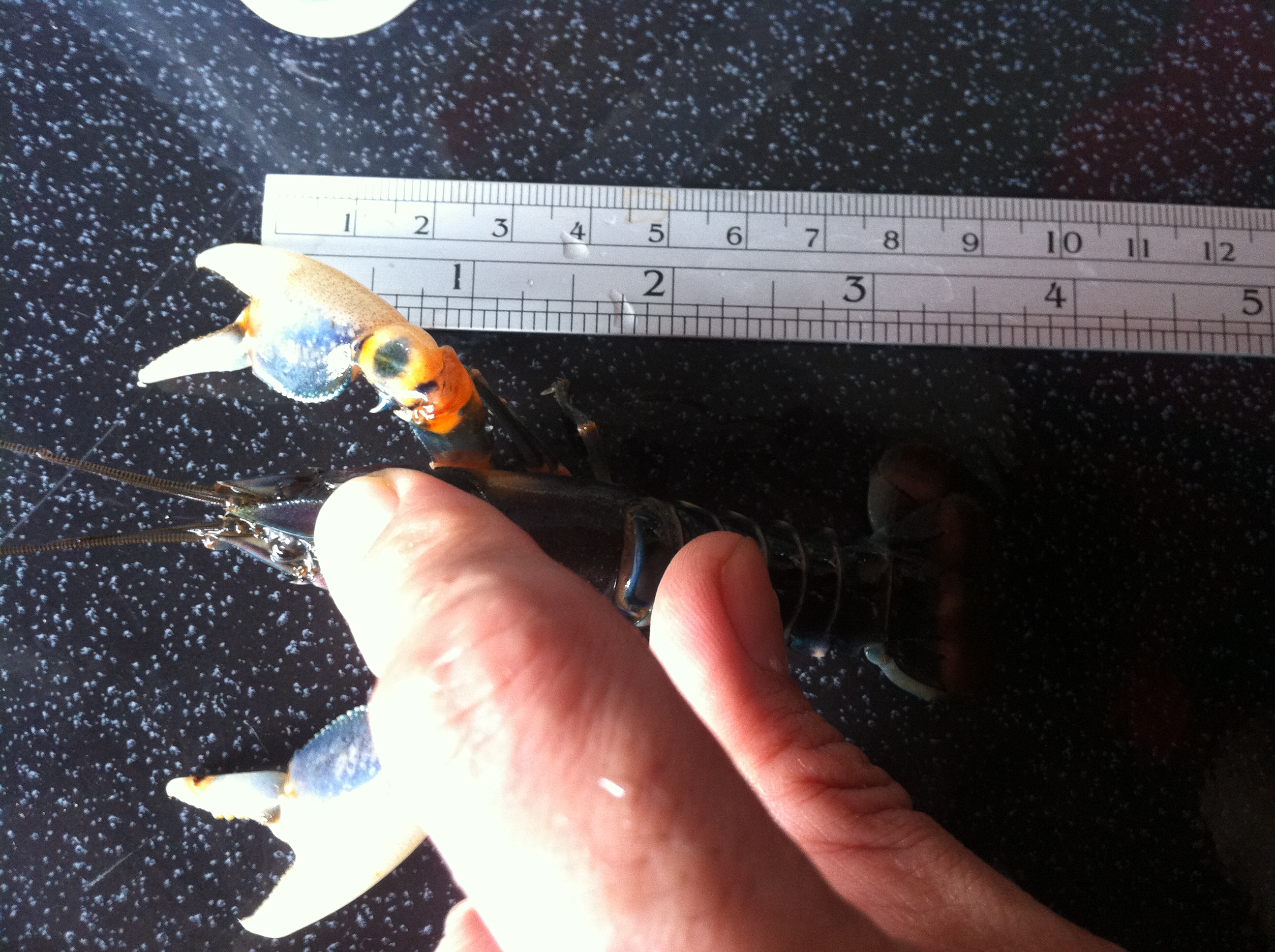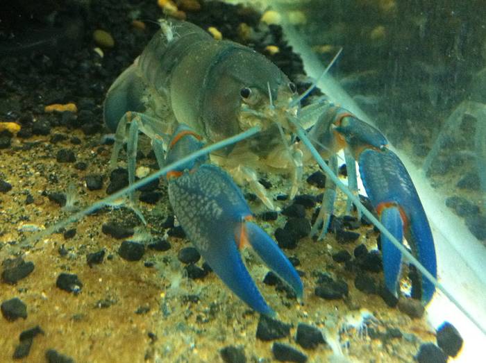 ประมาณ 4 นิ้ว เพศผู้มีอยู่ แต่สีน้ำเงินจะไม่มีอ่ะค๊า มีแต่สีออกเทาๆเขียวๆ ><" ตามรูป