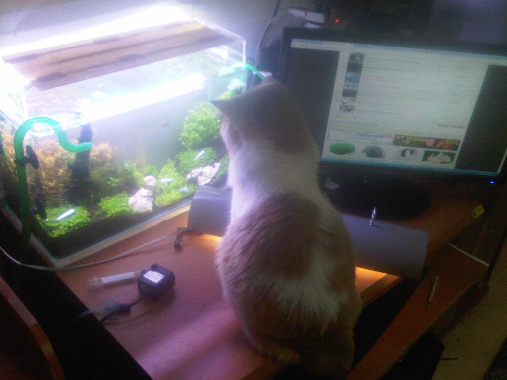 เฉพาะตอนเช้าๆ ครับ ที่่มันจะแอบกระโดดขึ้นไป ทีแรกผมนึกว่ามันจะแอบไปกินปลา แต่ไม่เห็นมันกินเลย ปรากฏว่า มันดักรอ จิ้งจก แทนครับ ดักถ่ายหลายวันแล้ว แต่ตอนนี้มันไม่ขึ้นไปบนไฟแล้วครับ ม้นมีเป้าหมายใหม่แล้ว อ่างปลาหางนกยูก ข้างล่าง n032 n032