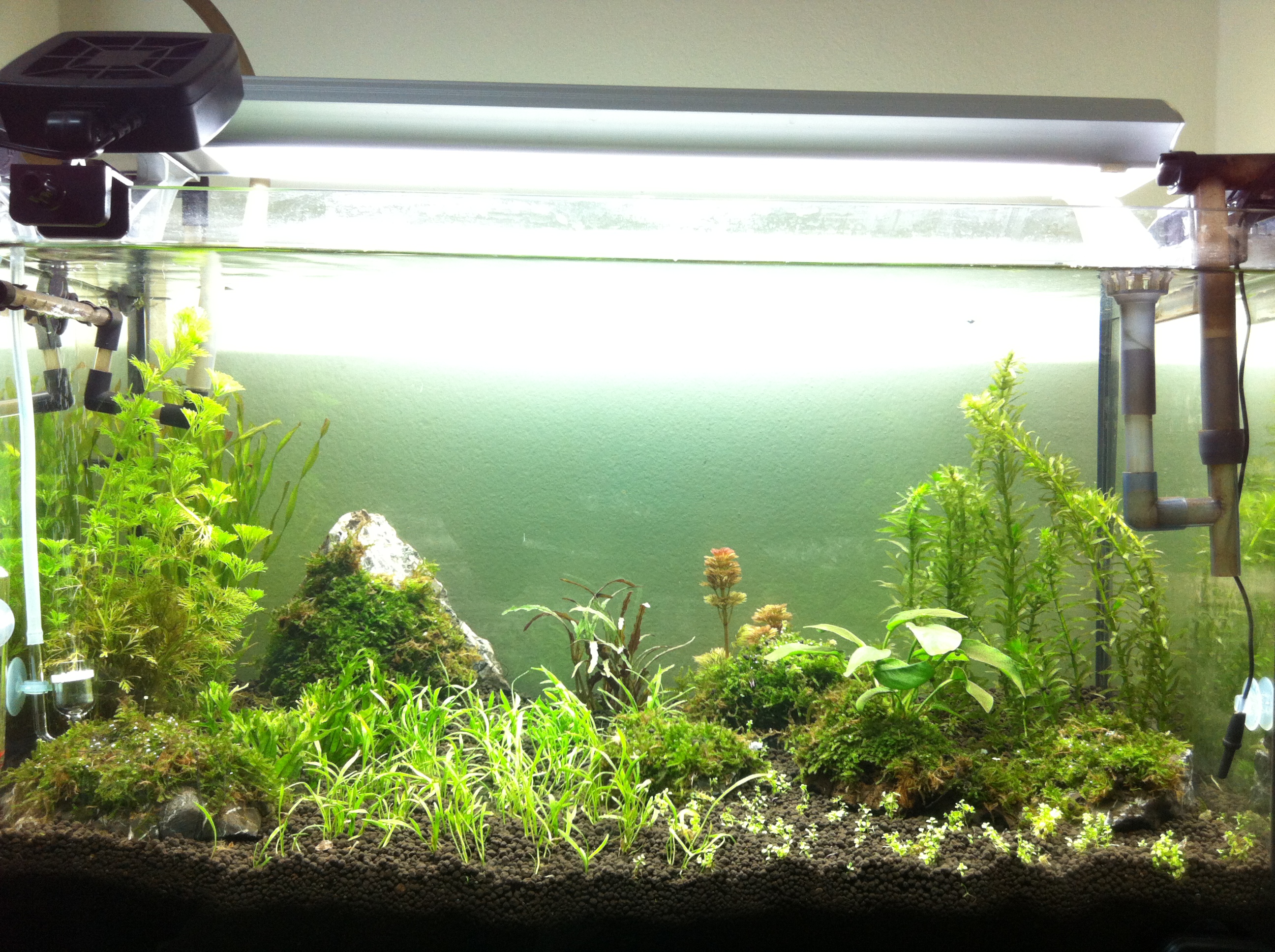 สองวันเเล้วนํ้าใสดีครับ เอาต้นอเมซอนออกเเล้ว เพราะใหญ่เกินไป ส่วนเทปเกลียวสิงคโปร์ตอนเเรกจะเอาออกเเต่มันก็สวยดีเลย ตัดครึ่งนึงเเละปักลงดินครับ + ซื้อหญ้าลิ้นงูเห่ามาเพิ่ม 1 pot (เดิมมี 2 pot) เเละหวีดจิ๋ว 1 pot ครับผม
