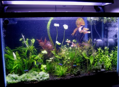 ตู้ 48 น้ำ 200 ลิตร ไฟ 54*5 เปิด 8 ชั่วโมง ต้นไม้เต็มตู้ สมช 30 ตอนนี้ขัดออกทุก 2 วันเลยครับ
