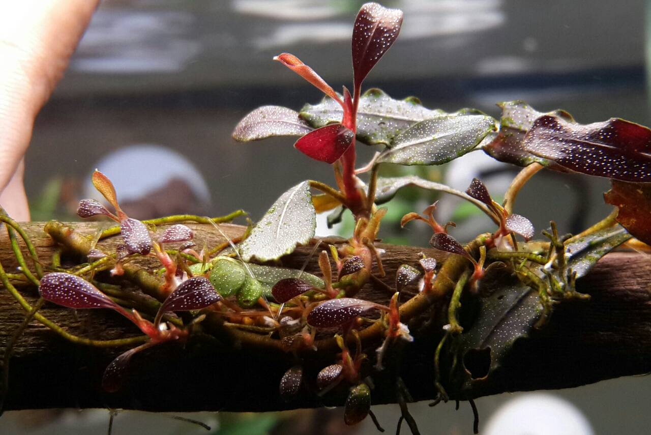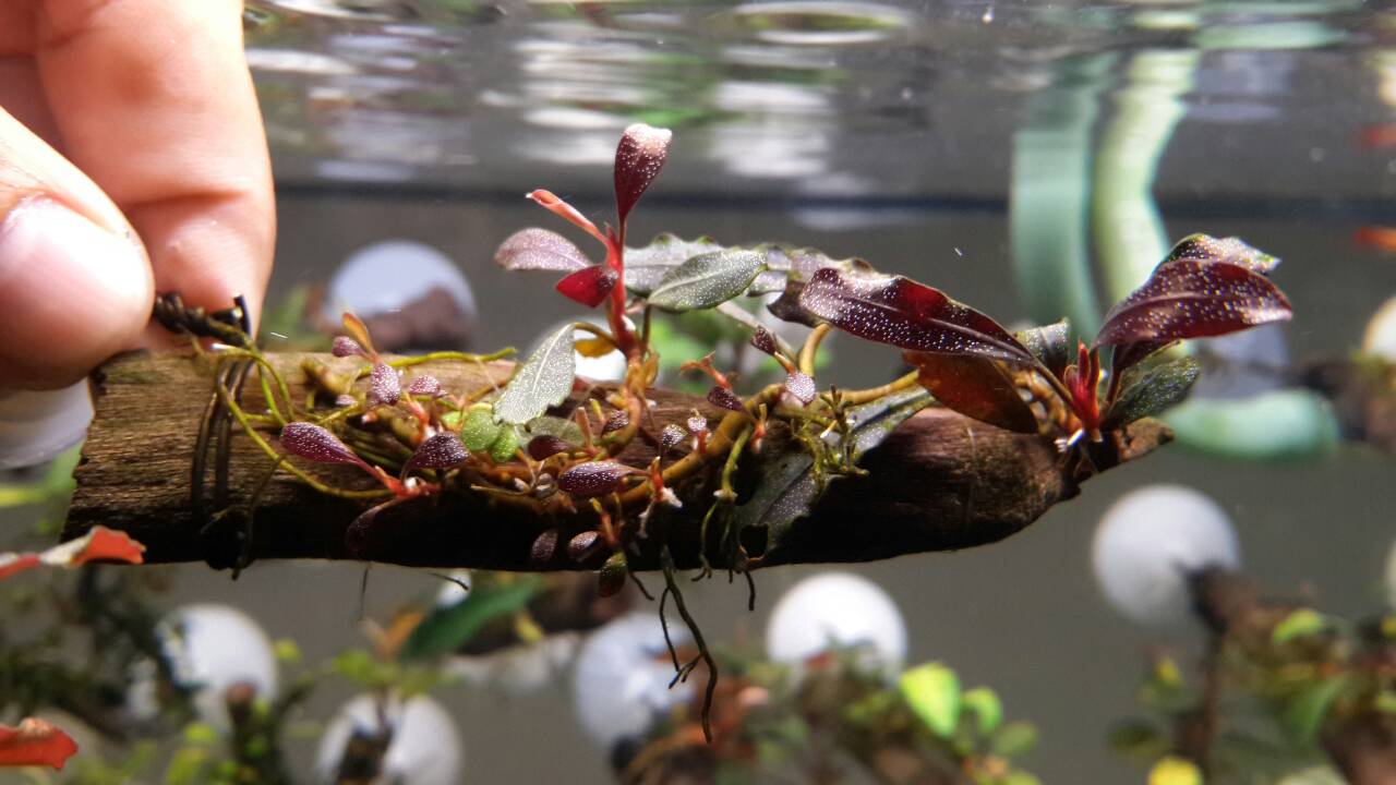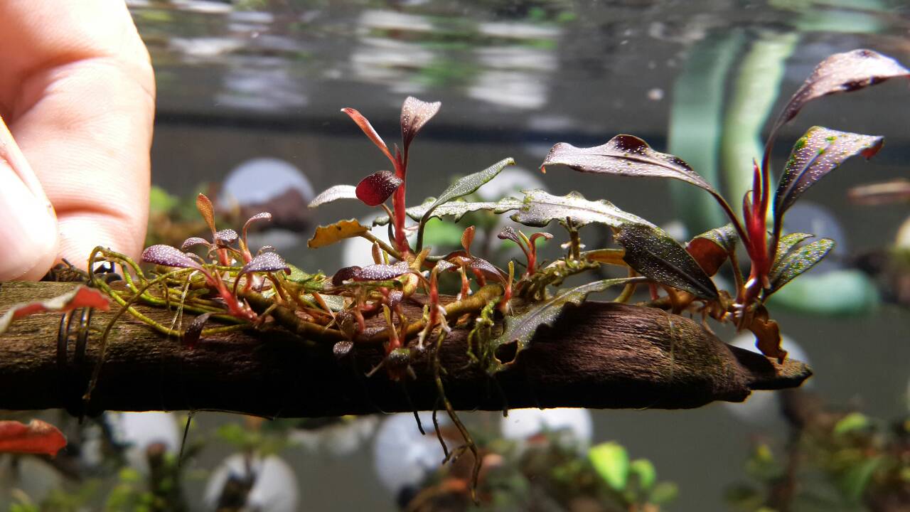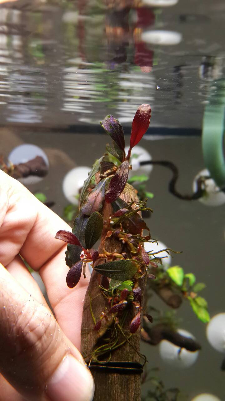 เปิดประมูล Bucephalandra  Brownie Ghost  แดง ม่วง ใบน้ำงามแต้น้อ 1ขอนครับ~~