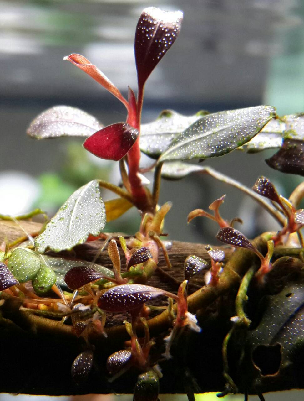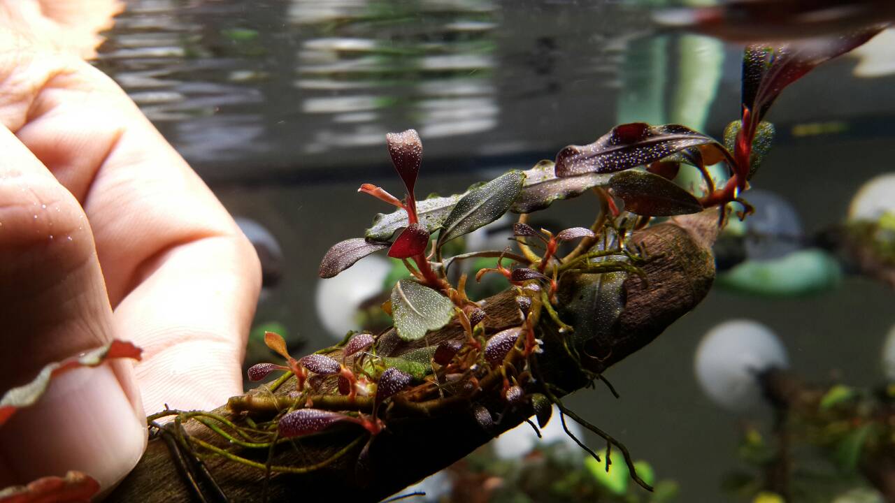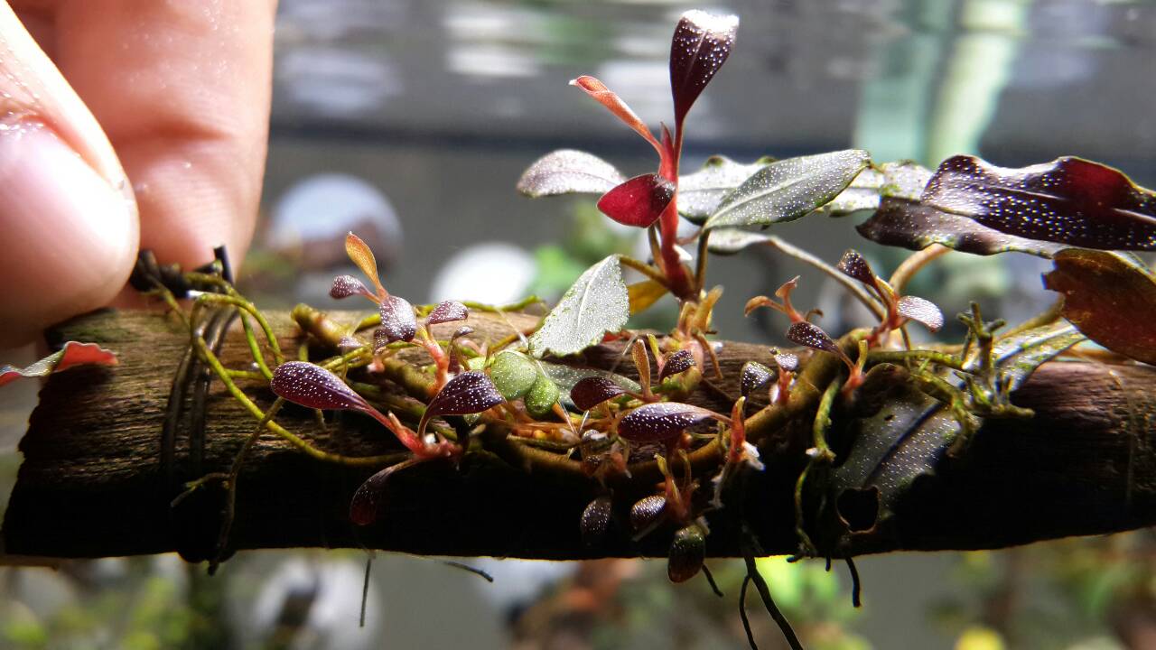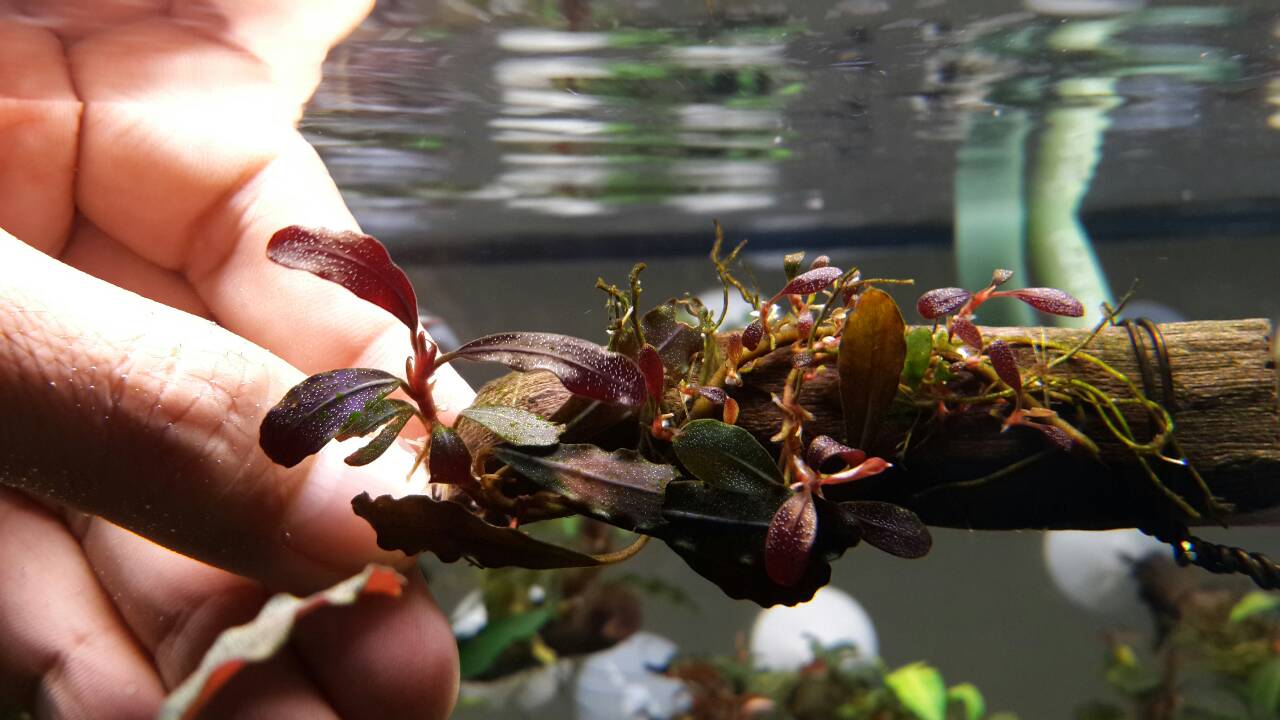เปิดประมูล Bucephalandra  Brownie Ghost  แดง ม่วง ใบน้ำงามแต้น้อ 1ขอนครับ~~