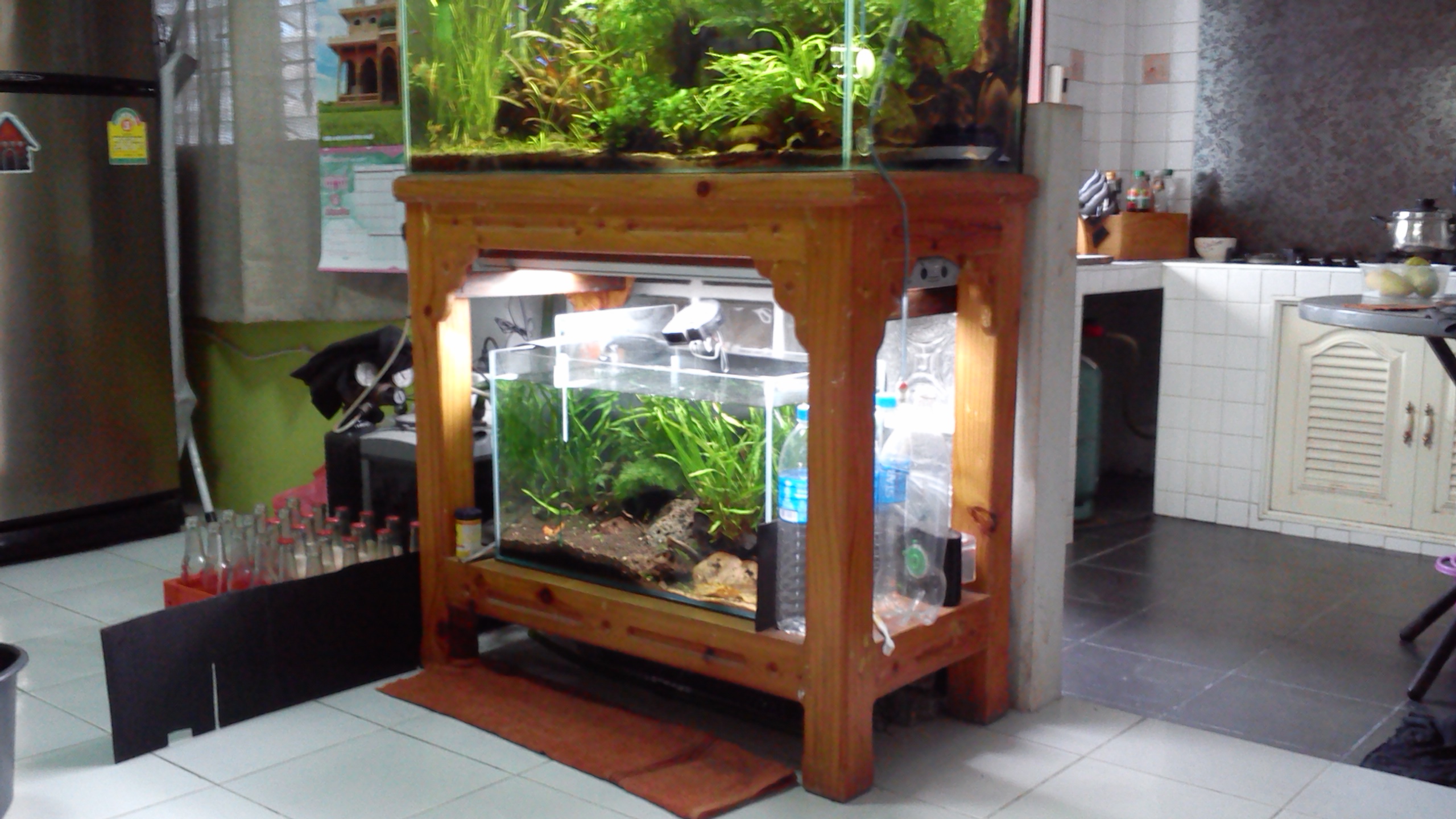 3.ขาตู้ไม้สน มีรอยเจาะสำหรับยึดของ และ ขาแขวนโคม และรอยเคยบวมน้ำมุมนึง