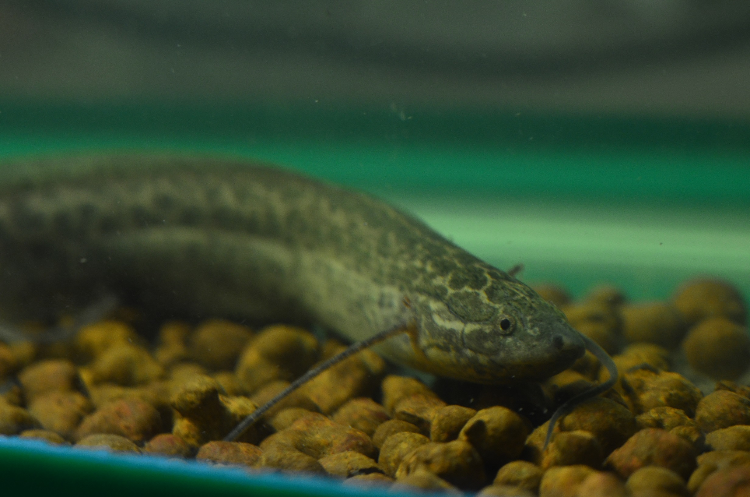 ปลาปอดเอธิ ครับ มาวันเดียวให้กินอาหารเม็ดได้เลย เดี๋ยวนี้ชูคอขึ้นมาขออาหารเองเลยเวลายืนดู ตัวนี้ลายเริ่มเข้มละอีกตัวตัวเล็กยังไม่ขึ้นดีแต่กินเก่งกว่าตัวนี้รอโตอีกหน่อย เดี๋ยวเอามา ว่ายในนี้ใหม่