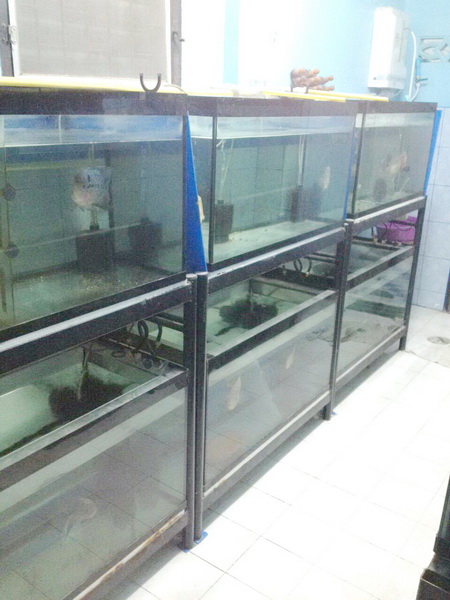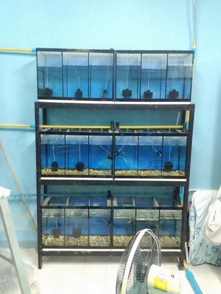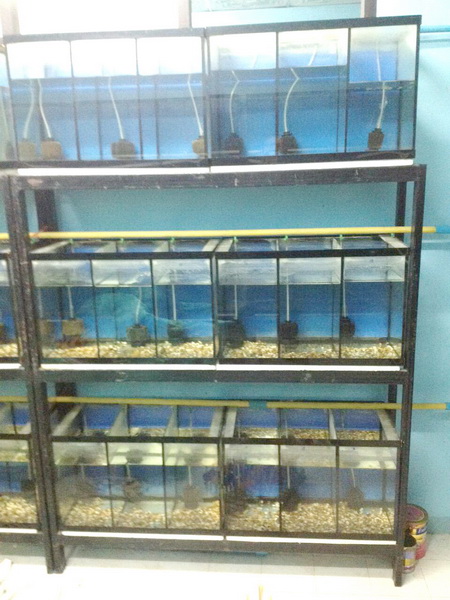 2.ขายตู้วิ่งปลา ขนาด ยาว24นิ้ว กว้าง20นิ้ว สูง24นิ้ว กั้น2ช่อง กาวใส คิ้วสีแดง มีตู้2ใบ พร้อมขาตั้ง ขายชุดละ 1200บาท