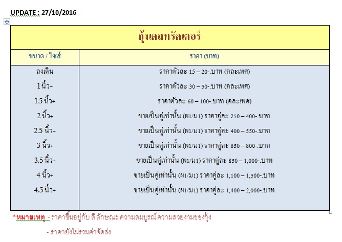 -กุ้งขนาด 2 นิ้วขึ้นไปมีรับประกันขณะขนส่ง
