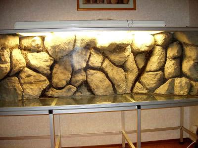 เคยดูใน youtube ของฝรั่ง พี่แกเล่น create background เอาซะเองเลย หลักๆก็ใช้โฟมเป็นวัสดุหลัก แล้วโปกด้วยปูนซีเม็นต์เคลือบเพื่อให้มีน้ำหนัก แต่ที่ผมไม่แน่ใจเรื่องซีเม็นน่ะครับ ว่าถ้าพอเราใส่น้ำลงตู้ไปแล้วไปแล้ว น้ำจะมีพิษสงอะไรมั้ย เมื่อเจอกับปูนซีเม็นต์ ??