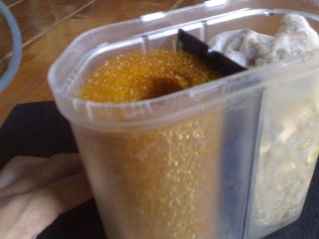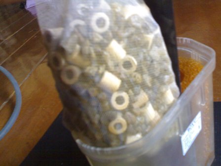 ใยกรองยังครบและใส่หินพัมมิสผสมลงไปเต็มช่องกรองด้วย