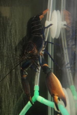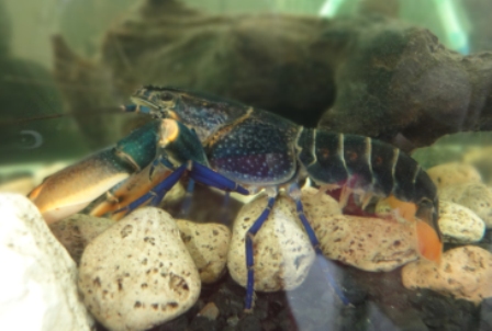 Cherax sp "Blue Moon" กุ้งเครฟิชสีน้ำเงินเข้ม บริเวณก้ามมีแถบสีขาวครีม สีอาจต่างกันบ้างแล้วแต่กุ้ง