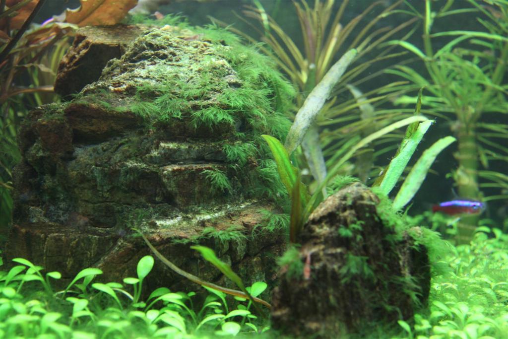 ตะไคร่ Cladophora sp.  เอาออกยากมากครับตัวนี้ต้องสางออกบ่อยๆ กุ้งไม่สน ปลาไม่แล ใช้คาร์บอนน้ำ overdose มากๆ + คุมไฟ ก็พอระงับการโตได้ แต่เอาออกให้หมด 100% ต้องใช้เวลาและความพยายามสูงส่ง