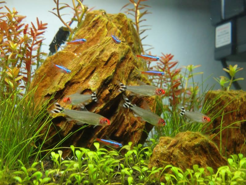 ตู้ตั้งใหม่ถ้ายังมีตะไคร่สีน้ำตาล แสดงว่าระบบกรองยังไม่สมบูรณ์ ดังนั้นปริมาณ แอมโมเนียอาจไม่ถูกกำจัดออกจากระบบทั้งหมด ทำให้เกิดปัญหาใบละลายได้ส่วนหนึ่ง แต่อีกส่วนหนึ่งซึ่งเป็นส่วนสำคัญที่มากที่สุด คือ ความสมดุลของสารอาหาร, แสง และ CO2 ในตู้นะครับ ตู้นี้แสงเยอะ CO2 น้อย ส่วนสารอาหาร ผมไม่รู้เพราะไม่ได้เขียนบอกไว้ แต่สำหรับ กรอสโซ แล้วควรเริ่มให้ โปแตสเซียมได้แล้ว ยิ่งไฟแรงด้วยยิ่งจำเป็นครับ