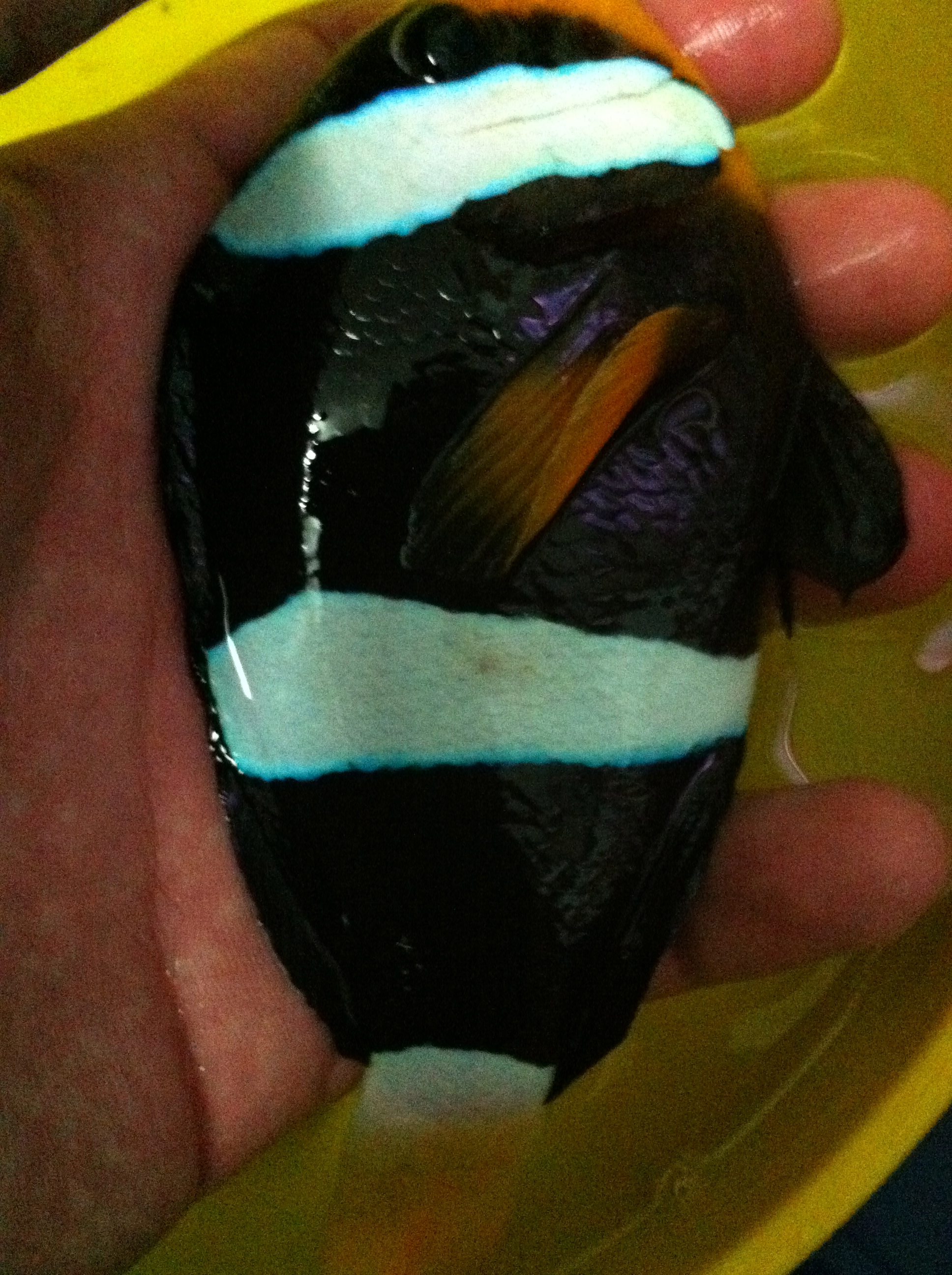 ปลาการ์ตูนลายปล้องครับ เป็นจุดแดงๆ