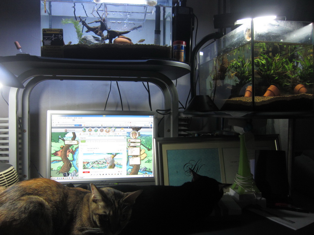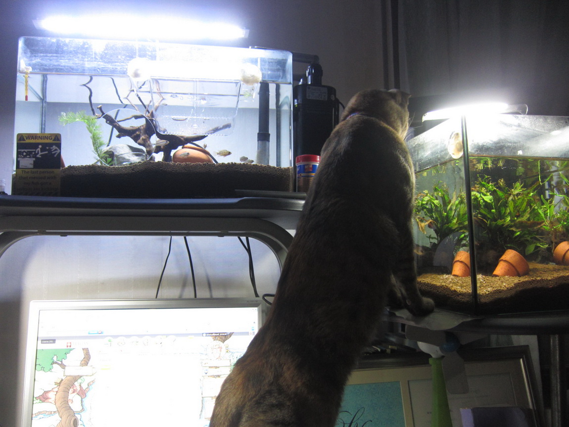 ถูกต้องนะคร้าบ ลูกอินคาสายน้องไมส์ ได้มา 4 ตัว พร้อมไบเทียเทเฟ่อีก 3 ตัว แต่ยังแยกเพศไม่ออก (แต่พอเห็นลางๆว่าน่าจะเป็นตัวผู้ 2 ที่เหลือต้องไปลุ้นเอาให้เป็นตัวเมีย) เป็นปลาดุสมคำร่ำลือจริงๆ เอาลงปุ้บก็ไล่เจ้าถิ่นกระเจิดกระเจิงทันที แต่ไม่เห็นมันหลบเท่าไหร่เลยนะ ส่วนใหญ่ก็ออกมาออกันอยู่หน้าตู้ตลอด หรืออาจจะเพราะมันยังเล็กอยู่ก็ได้มั้ง