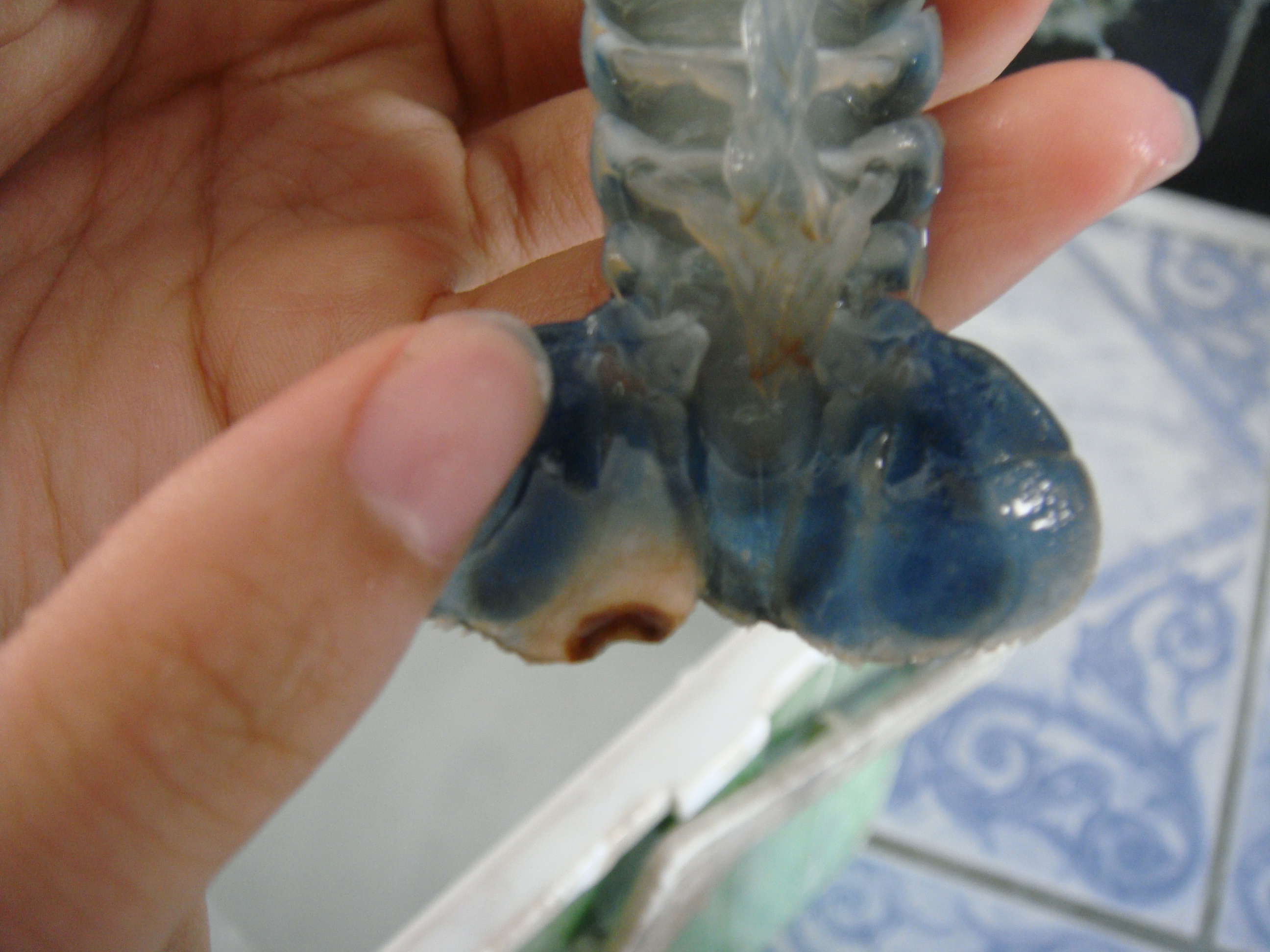 แต่ตัวที่เป็นลึกตัดแล้วส่วนมากไม่ค่อยรอดค่ะ ตายก่อนลอกคราบทุกตัว ถ้าไม่ตัดส่วนมากกุ้งจะค่อย ๆ