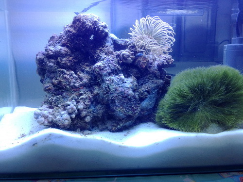 หินเป็นปล่อยไว้ เดี๋ยวระบบเข้าที่จะดีเอง ที่สำคัญ ปรับความเค็มให้ 30 ppt และหาแบคมาใส่ไปซักหลอดก็ได้ ที่เหลือ รอครับ รออย่างใจเย็น