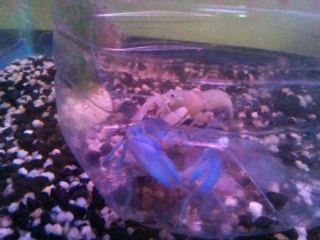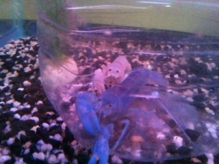 สีฟ้า 4นิ้วกว่า(ผู้) มีตำหนิที่ก้ามข้างหนึ่ง แต่โดยรวมสวย(ขายแล้ว)