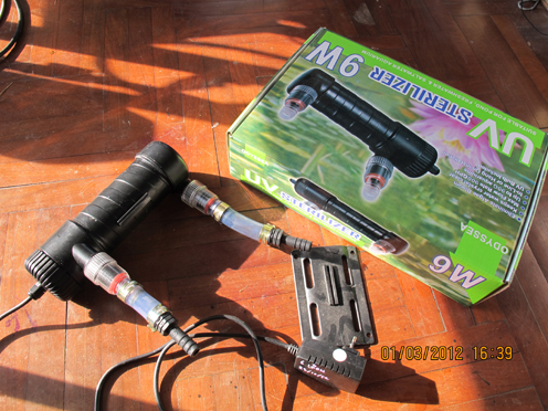 ผมใช้วิธีต่อกะสาย outflow ของกรองอ่ะครับ แล้วก็เข้าตู้เลยครับ UVจะได้สะอาด