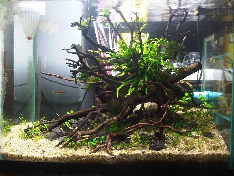 จริงๆก็ไม่ได้ตั้งใจจะตั้งตู้ แต่พอดีไปเดินสวนเป็นพี่ แล้วบังเอิญไปเห็นขอนเข้า จับมาประกอบจับวางดู เลยจัดมาซะหน่อย + กับขอนที่มีอยู่ก่อนแล้ว จัดไปจัดมาก็ได้ประมาณนี้ครับ เป็นตู้ 24 กรองข้างครับ ผมว่ามันยังมีบางจุดที่มันแหม่งๆอยู่ ส่วนตัวมองว่าตรงเป็นจุดที่โล่งทางด้านขวา [on_007] รบกวนพี่ๆแนะนำได้เต็มที่เลยครับ