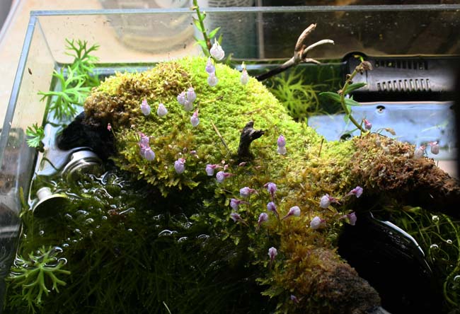 ที่น่าสนใจอีกอย่างหนึ่งคือ เค้าเลี้ยงหญ้าไว้บนขอน แล้วเอามอสคลุมไว้อีกชั้นหนึ่งดูเป็นธรรมชาติมาก การเลี้ยงหญ้าบนขอนทำให้กำหนดตำแหน่งของหญ้าให้ปริ่มๆน้ำได้ง่าย และสามารถเคลื่อนย้ายตำแหน่งได้อีกด้วย ^-^