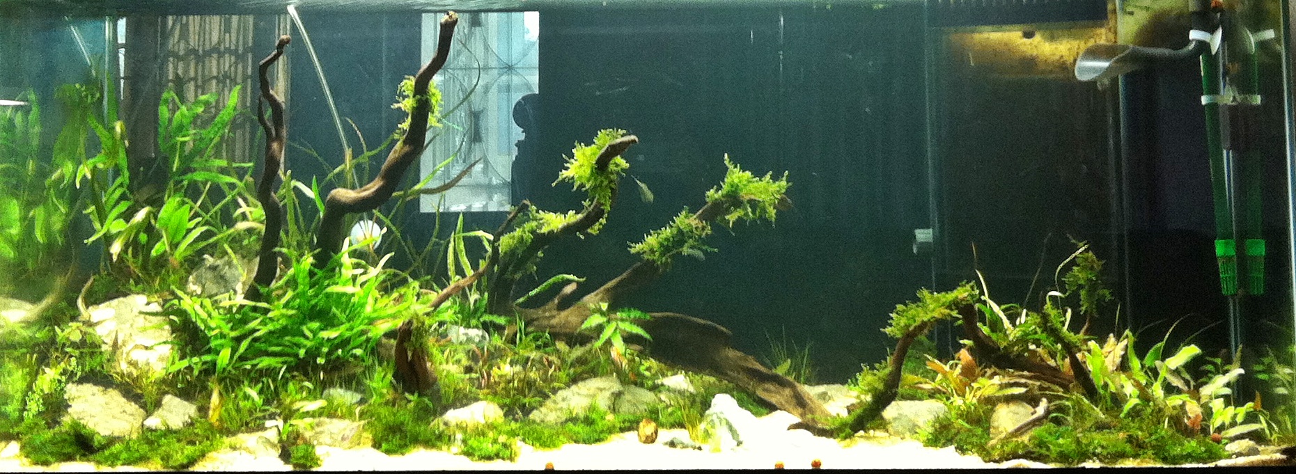 อยากจัดตุ้ใหญ่ๆมานานแล้วพอดีมีตู้ปลาหมอว่างพอดี เลยเอามาจัดซะ ขอนก็เอาขอนเก่าๆที่รวมไว้มานานได้มาจัดซักที
