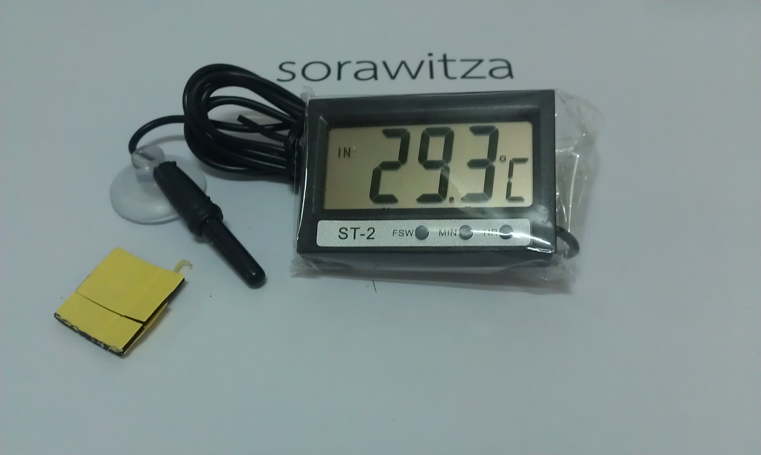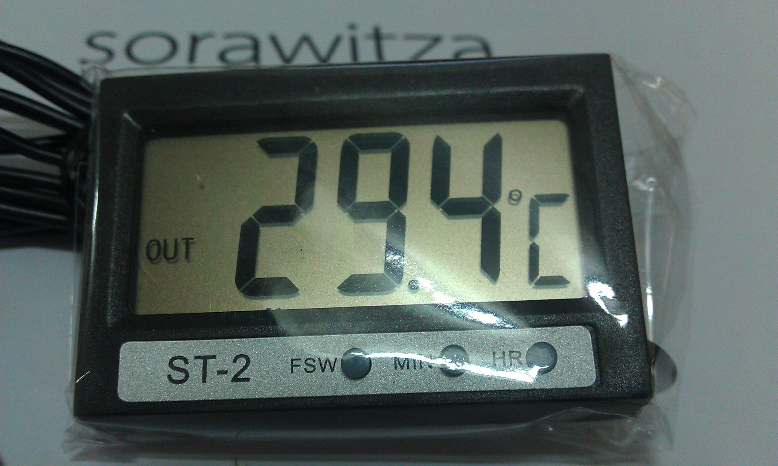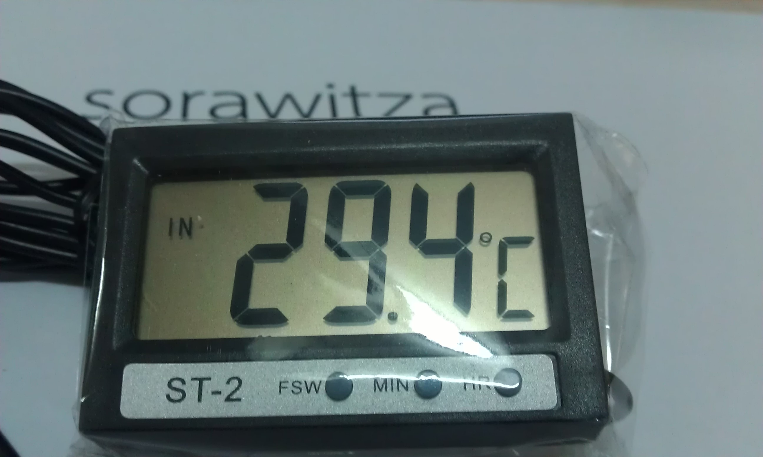 **ซึ่งก็หมายถึงอุณหภูมืน้ำในตู้ และอุณหภูมินอกตู้ นั้นเอง พร้อมมีนาฬิกาให้ด้วยครับ