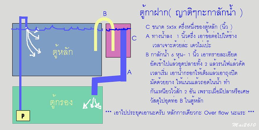 ทำ Box จากกระจกแบบในภาพ เจาะแบบในภาพเป๊ะๆ แต่จะทดน้ำจากตู้เข้ามาก็ทำท่อเป็นตัว U คว่ำตามที่เขียนไป rep แรก