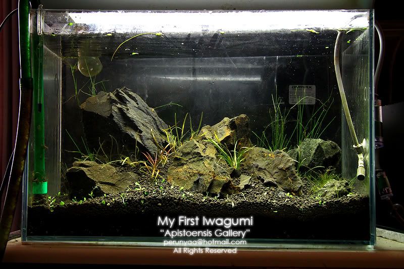 ส่วนตัวแล้ว ผมไม่เคยจัด Iwagumi  เพราะคิดว่าเป็นแนวไม่ถนัด  ส่วนใหญ่จะจัดอะไรที่มันรกๆๆ  มากกว่า