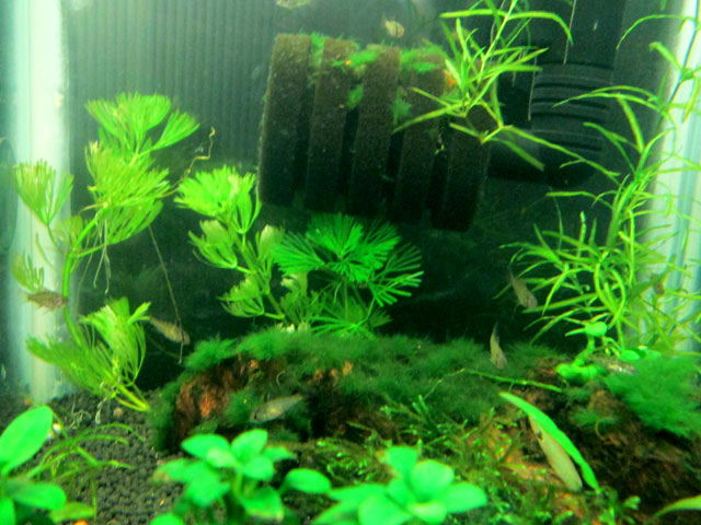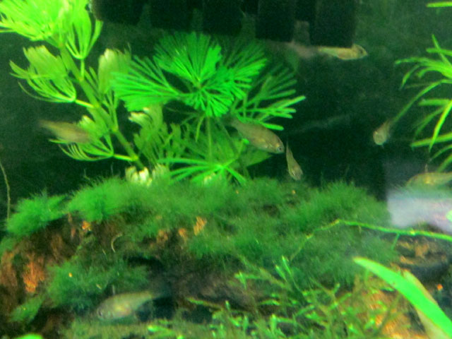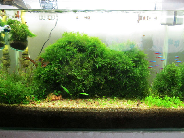 = ตู้ 24 นิ้ว พื้นปลูกเป็นกรวดลูกรังเททรายทับบน ต้นไม้มีพวกมอสเป็นหลัก เพื่อนร่วมตู้เป็นคาดินัล เเพะแพนด้า กุ้งเชอรี่