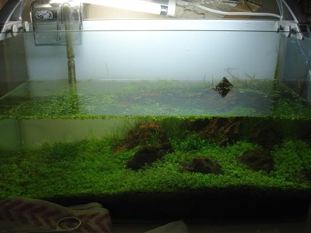 เพอร์วีดจิ๋วที่หนาเกินทำให้ใบที่อยู่ด้านล่างไม่โดนแสง และการทิ้งตู้ไว้โดยไม่ได้ให้อะไรเลย  [แคะขี้มูก]