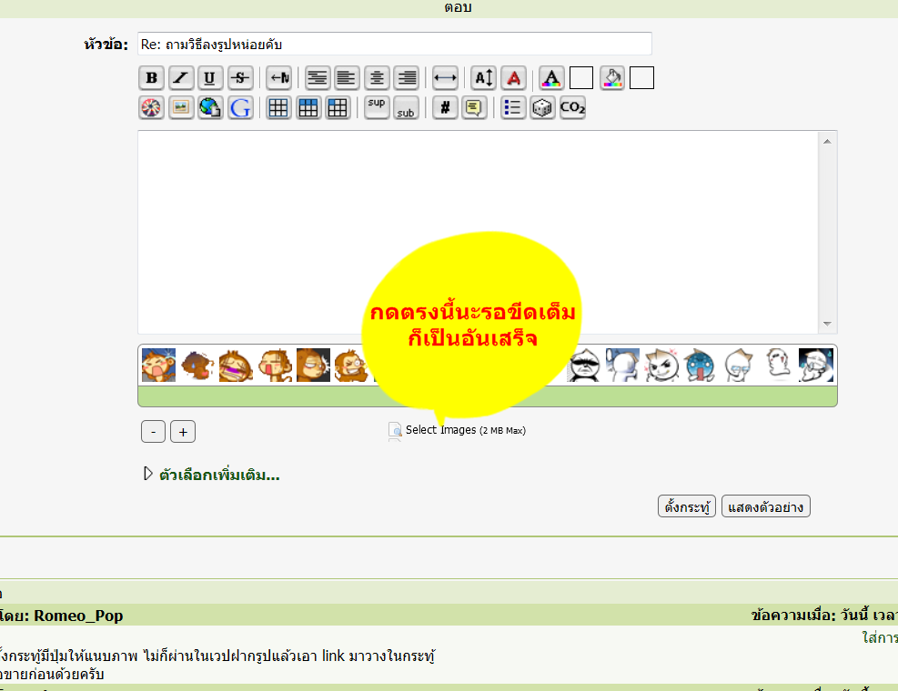 ในหัวข้อตั้งกระทู้มีปุ่มให้แนบภาพ ไม่ก็ผ่านในเวปฝากรูปแล้วเอา link มาวางในกระทู้