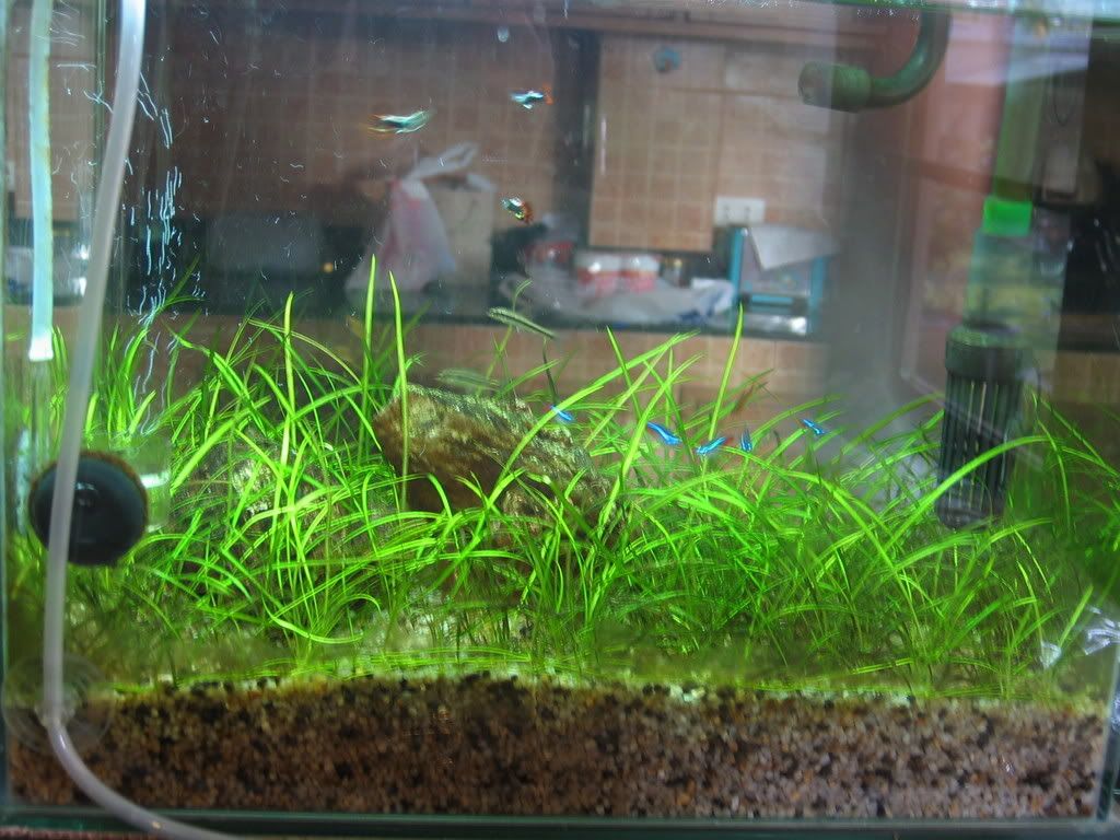 หินเล็กไปนิด กับอย่าวางกลางตู้เกินไปนัก แสงน้อยไปจนเทเนลุสยืดมาบังหินหมด เกลี่้ยพื้นปลูกให้เรียบๆสวยๆกว่านี้หน่อย ก็แจ๋วแล้วครับ
