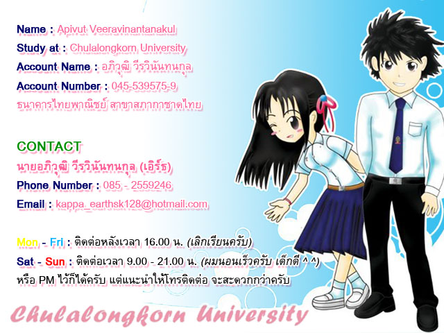 ติดต่อ : เอิร์ธ 085-2559246 ได้เลยครับ