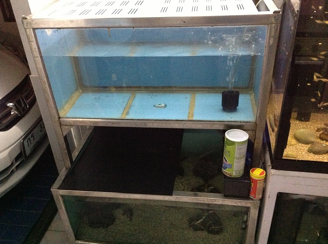 ถ้าข้างบนใส่น้ำเต็มตู้่เมื่อไรไม่เหลือครับกระจกด้านข้างที่รับน้ำหนักตู้ข้างบนจะร้าวแล้วมีเสียงปริออก ตู๊ม กลายเป็นโกโก้ครั่น จากประสบการณ์ตอนเด็กๆ ดีที่เลี้ยงตู้อยู่นอกบ้าน [on_051]
