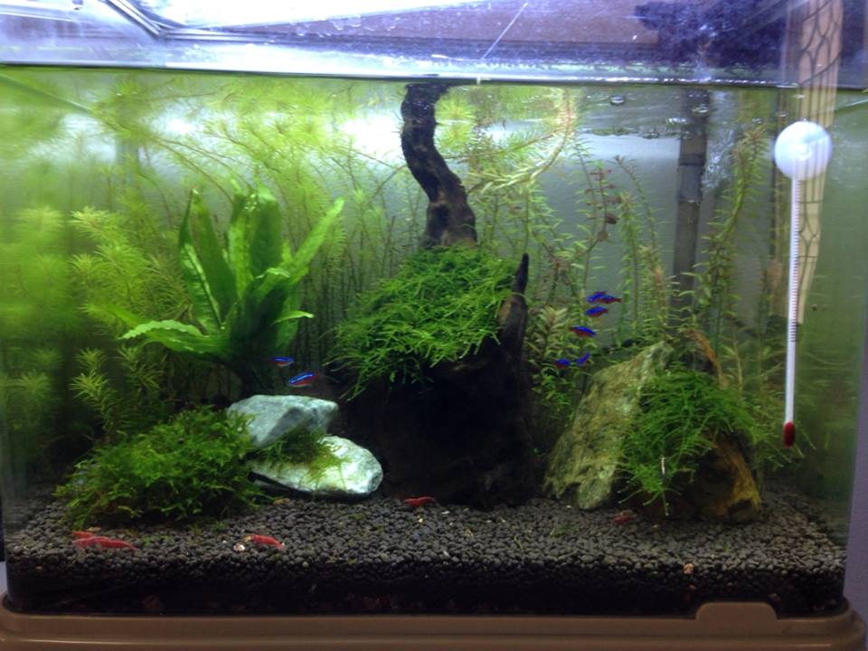 ตู้ผม16นิ้ว ปลาคาดินัล9ตัว กุ้งเชอร์รี่10ตัว หอยพิงค์ฮอน ต้นไม้ข้อหลังตู้2-3ชนิด มอสอีกนิดหน่อย