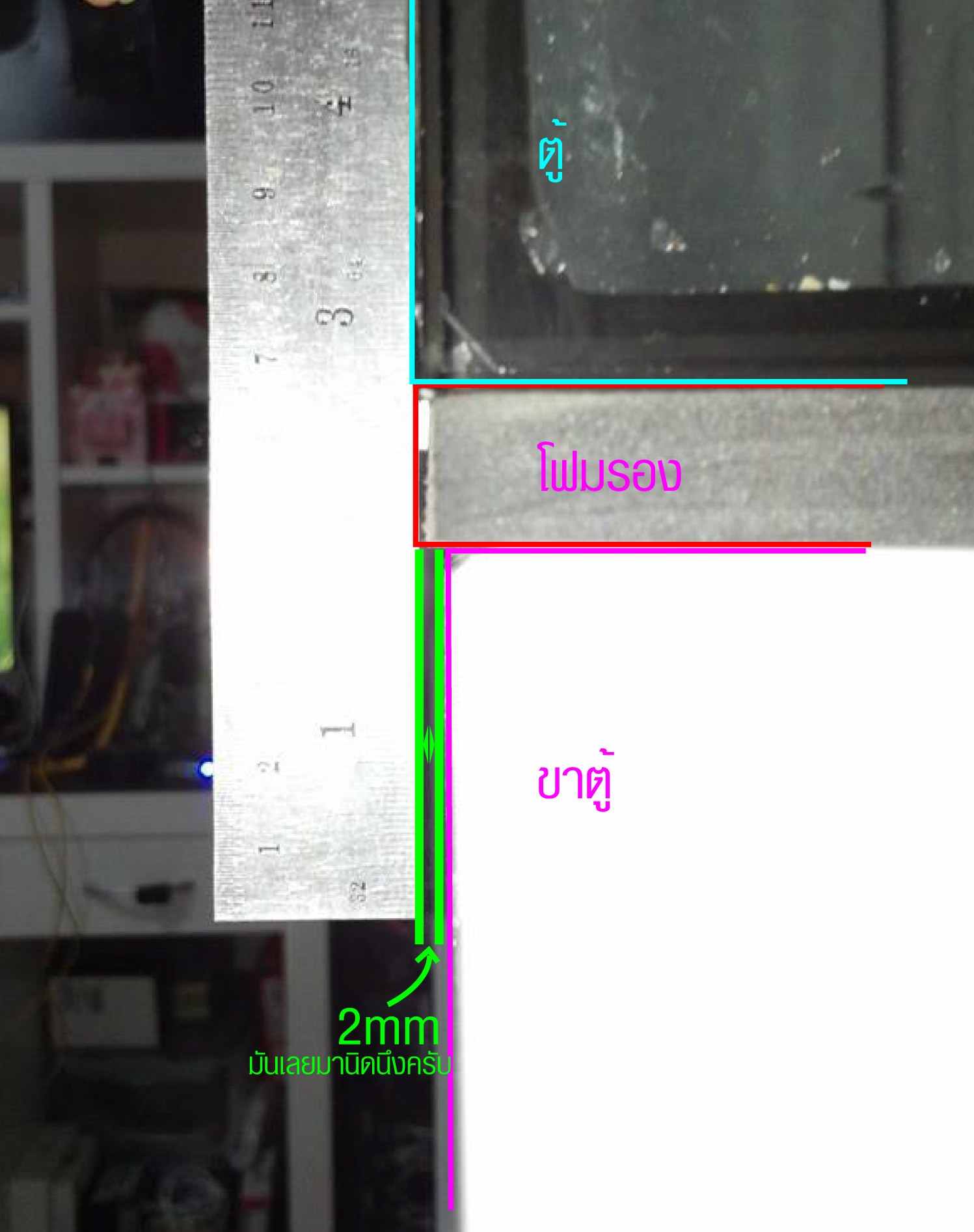 ผมว่าไม่น่าจะมีปัญหาครับ เพราะเกินมา2mm. เอง เเต่ว่าตัวโฟมยางดำควรจะกว้างยาว เท่ากับตู้นะ จะได้ช่วยรับเเรงกดครับ
