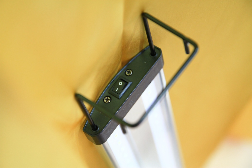 เมือเปิดออก เนื้อวัสดุทำตัวเรือนโคมใช้อลูมิเนียม ปัดลายหยาบ มีสวิทส์เปิดปิด และปลั๊กตัวผู้แบบมีการวด์ เพื่อความปลอดภัย