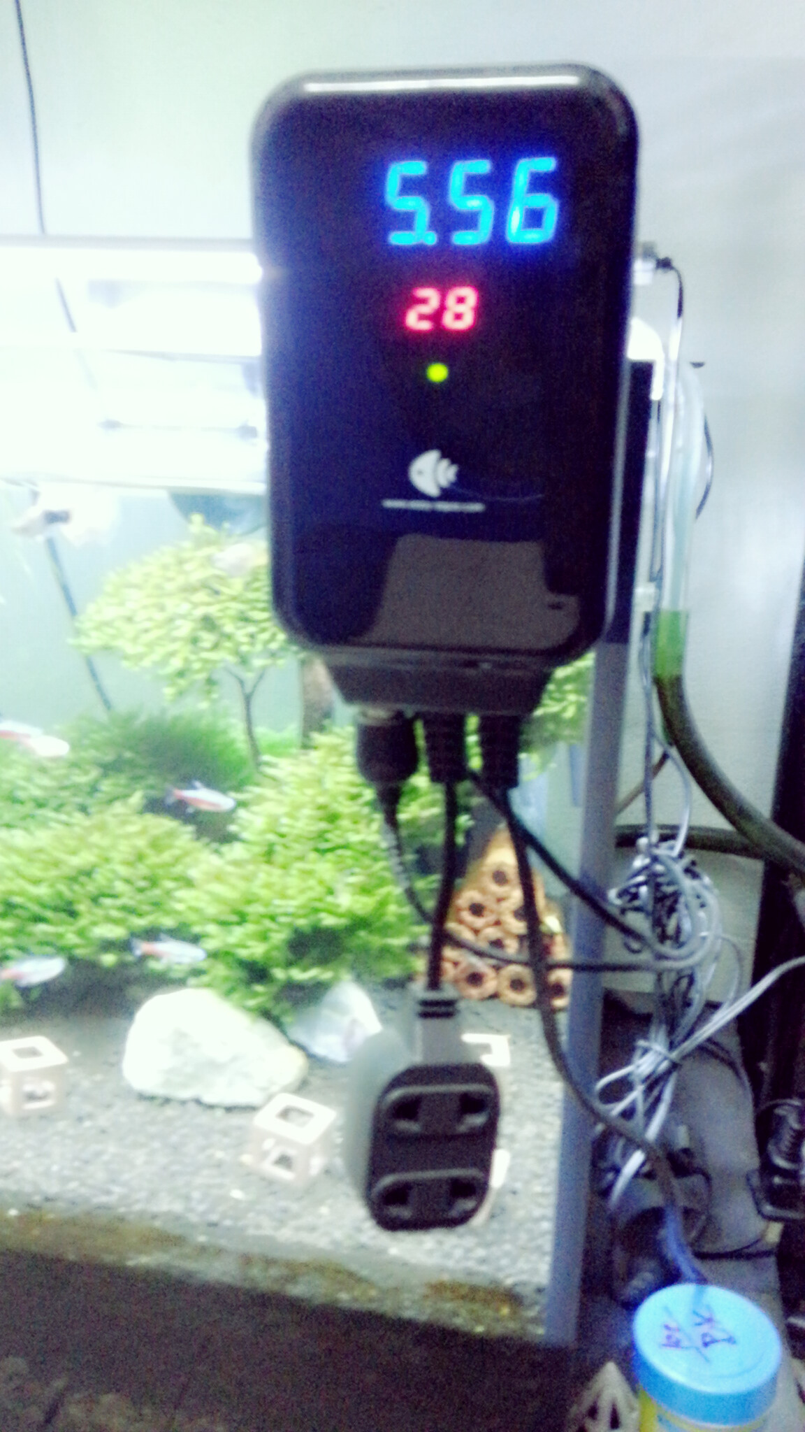 รายการที่ 2 ...PH มอนิเตอร์ พร้อม เทอร์โมมิเตอร์วัดอุณหภูมิแสดงผลบนหน้าจอ LEDสามารถวัดค่า PH และครอนโทลค่า PH  และ อุณหภูมิ ในตู้เลี้ยงได้อย่างแม่นยำ ( ไม่มีกล่อง ใช้งานมา 6 เดือน ไม่มีส่วนไหนเสีย )