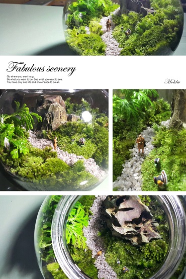 โหลกลมแบบปิด พร้อมฝาวันที่สามารถหมุนเลื่อนวันที่ได้เพื่อสะดวกในการช่วยจำว่าเรารดน้ำหนสุดท้ายให้ Terrarium ที่รักของเราวันสุดท้ายเมื่อไหร่ ราคา 950 บาท โหลนี้แบ่งเป็น 3 layer ครับ สูง กลาง ต่ำ ไล่ลงมาจากทางซ้าย สามารถเอา figure ไปวางบนต่ำแหน่งต่างๆที่มีมอสดิน ซึ่งมีใบที่สั้นเปรียบเหมือนกับเป็นสนามหญ้าได้ง่ายๆ ตามจินตนาการของแต่ล่ะท่านเลยครับแต่ตอนนี้ช่างภาพเราอยากได้รูปมุมช้อนครับเค้าเลยมายืนข้างล่างสุด แล้วถ่ายย้อนขึ้นไป