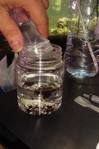 แล้วก็เอาใข่ไรทะเลใส่ลงไป1/5ของช้อนพลาสติก