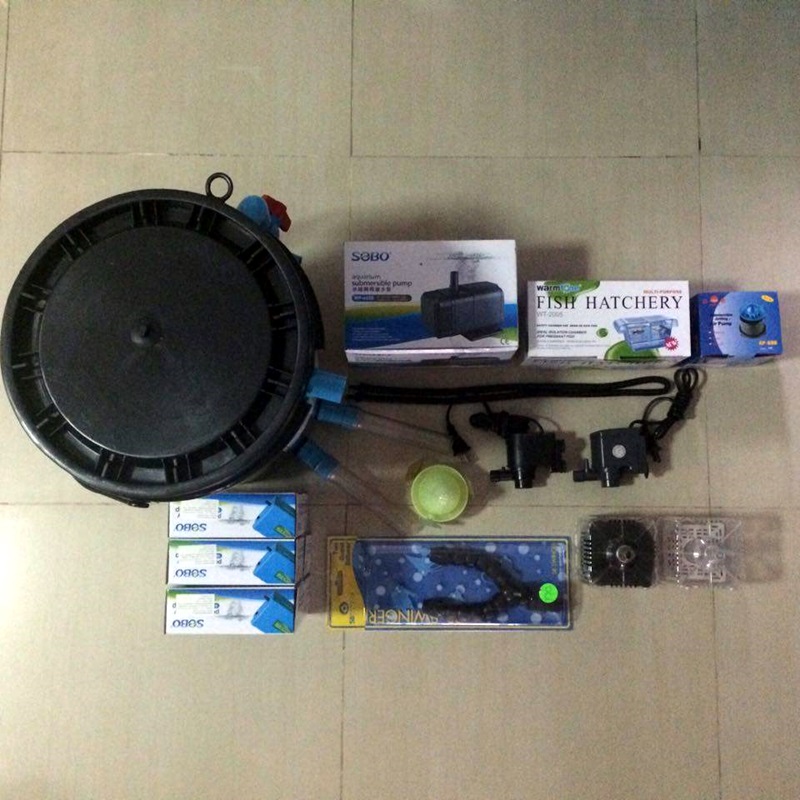 1. ถังกรอง 20 ลิตร + หินพัมมิส ซื้อไปยัดใยแก้วต่อปั๊มใช้ได้เลยครับ