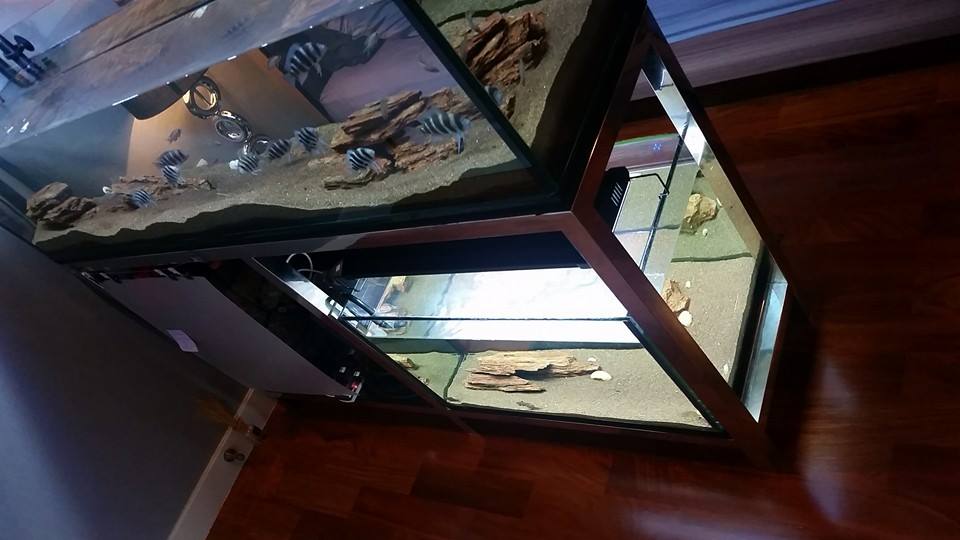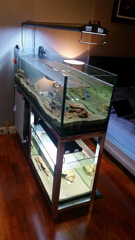 - ขา Stainless อย่างดี จากร้าน THaRA สามารถวางตู้ 60x15x15 ได้ 1 ตู้ และ 27x15x15 ได้ 2 ตู้ ( ปัจจุบันวาง 27 แค่ตู้เดียว อีกช่องใช้วางกรองนอก 2  อัน ) ผ่านการ อบ Epoxy แล้ว
